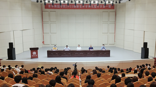 典礼伊始,院党委书记侯帅首先代表全院师生向2022级新生的到来表示热烈的欢迎和衷心的祝贺,并详细介绍了学院的历史传统和骄人成果。院长张伟结合学院发展的实际情况,围绕学生培养目标、专业发展与实践、考研与就业、个人生活与学习等主要方面,给同学们上了一堂精彩的“开学第一课”。他强调,作为一名新生一要明晰学习的目的与意义,厘清学业发展与社会实践的关系把艺术学习融入个人实践中去,在实践中增强个人本领;二要培养创新意识,充分调动个人主动性,创新性开展专业学习;三要以德立身,培养良好的道德品质,以尊重和包容的心态融入集体生活;四要养成良好的学习和生活习惯,把大学生活演绎成自己人生中最美好的记忆。教师代表魏波结合工作实际,鼓励同学们加强专业学习,做一个敢于拼搏、勇于担当、不怕挫折的人。此外,新老生代表分别作了发言。