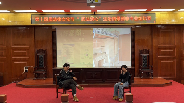 本次比赛历时一个多月,在严格遵守校园疫情防控要求下,同学们克服排练时间不充裕、没有排练场地等困难,在学院大厅、空旷花园进行一次次的排练,反复推敲每一句台词,细抠每一个动作。最终,这部自编自导、自排自演,凝聚了同学们汗水和智慧的情景剧,在此次比赛中得到高度评价,展现了我院学生扎实的表演功底、良好的舞台表现,也让同学们在情景演绎中了解校园贷,普及了面对不良贷款应如何用法律来维护自己权益。