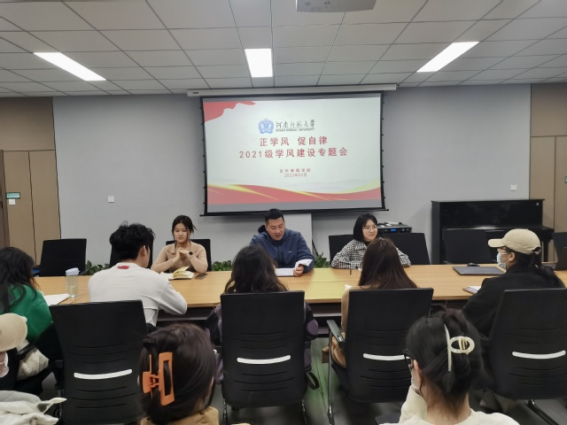 为深化学风建设,助力学生成长成才,营造积极向上的学习氛围,3月16日,我院2021级在学院二楼会议室召开“正学风·促自律”学风建设专题会,2021级专兼职辅导及各班级学生干部参加了此次会议。