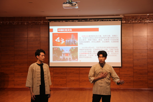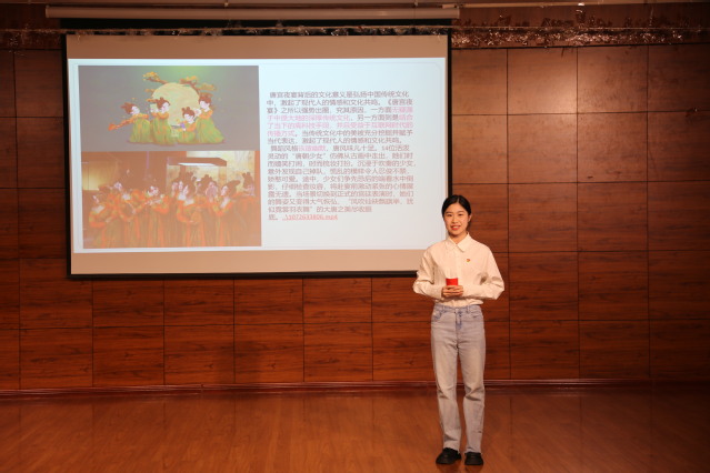 以赛促学,在支部的精心策划与认真排练下,参赛队员们纷纷结合个人实际经历,创造性结合情景表演、团课演绎等方式讲述学习党的二十大精神的心得、感受,赢得了现场观众的阵阵喝彩。其中,2021级研究生团支部通过情景演绎焦裕禄事迹,诠释焦裕禄精神,号召同学们学习弘扬焦裕禄同志不怕困难、不惧风险、迎难而上的精神气概,稳扎稳打向前走,不断积小胜为大胜。2022级音乐学班团支部成员通过视频展示其爷爷作为亲历者参与修建红旗渠的感人故事,带领同学们深刻领悟习近平总书记在考察红旗渠时候的重要讲话精神。舞蹈编导班团支部充分发挥专业优势,通过表演“唐宫夜宴”“巴特尔”等舞蹈片段,表达了作为当代青年坚定理想信念,传承与弘扬中华民族优秀传统文化的决心与信心。赛后,评委老师们纷纷结合个人感受进行点评,充分肯定了各团支部成员认真参与、积极筹备、用情演绎的良好表现,并为获奖支部颁奖。