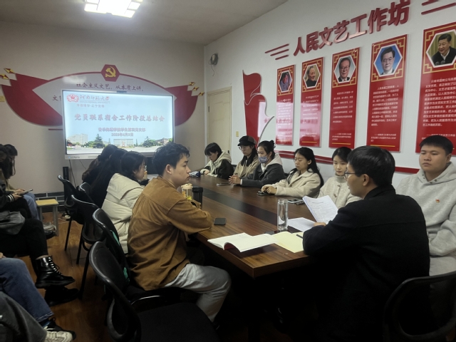 自本学期开始,我院2022级积极总结经验,结合实际工作需求,策划开展 “党员先锋,‘寓’你同行”学生党员联系本科宿舍活动,通过制定主题活动实施方案与监督办法,组织年级全体学生党员在专业学习、人际关系处理、保研考研、本科综合测评等各项工作方面开展疑难解惑、困难帮扶,从生活的点滴中展现党员的先进性、模范性。活动期间,全体学生党员纷纷采用不同的方式走进联系宿舍,努力成为大家的知心朋友,与大家一同分享成长道路上的经验、教训。在总结会上,成员们依次总结介绍了活动开展情况,并就活动中产生的一些问题进行了详细讨论。