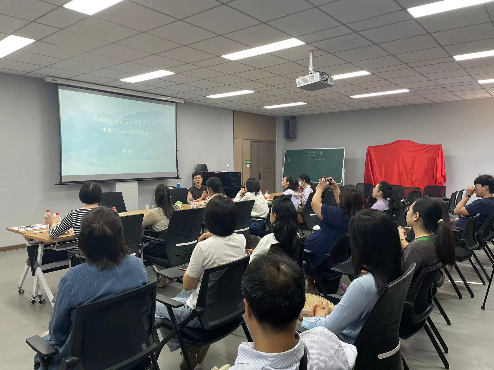 为推动学院科研工作的持续发展,激励学院教师踊跃参与国家社科基金艺术学项目申报,5月14日下午,我院国家社科基金艺术学项目申报经验分享会在音乐北楼二楼会议室召开。学院拟申报下一年度国家社科基金艺术学项目教师、近五年新进青年博士到场参会,会议由副院长师玉丽主持。