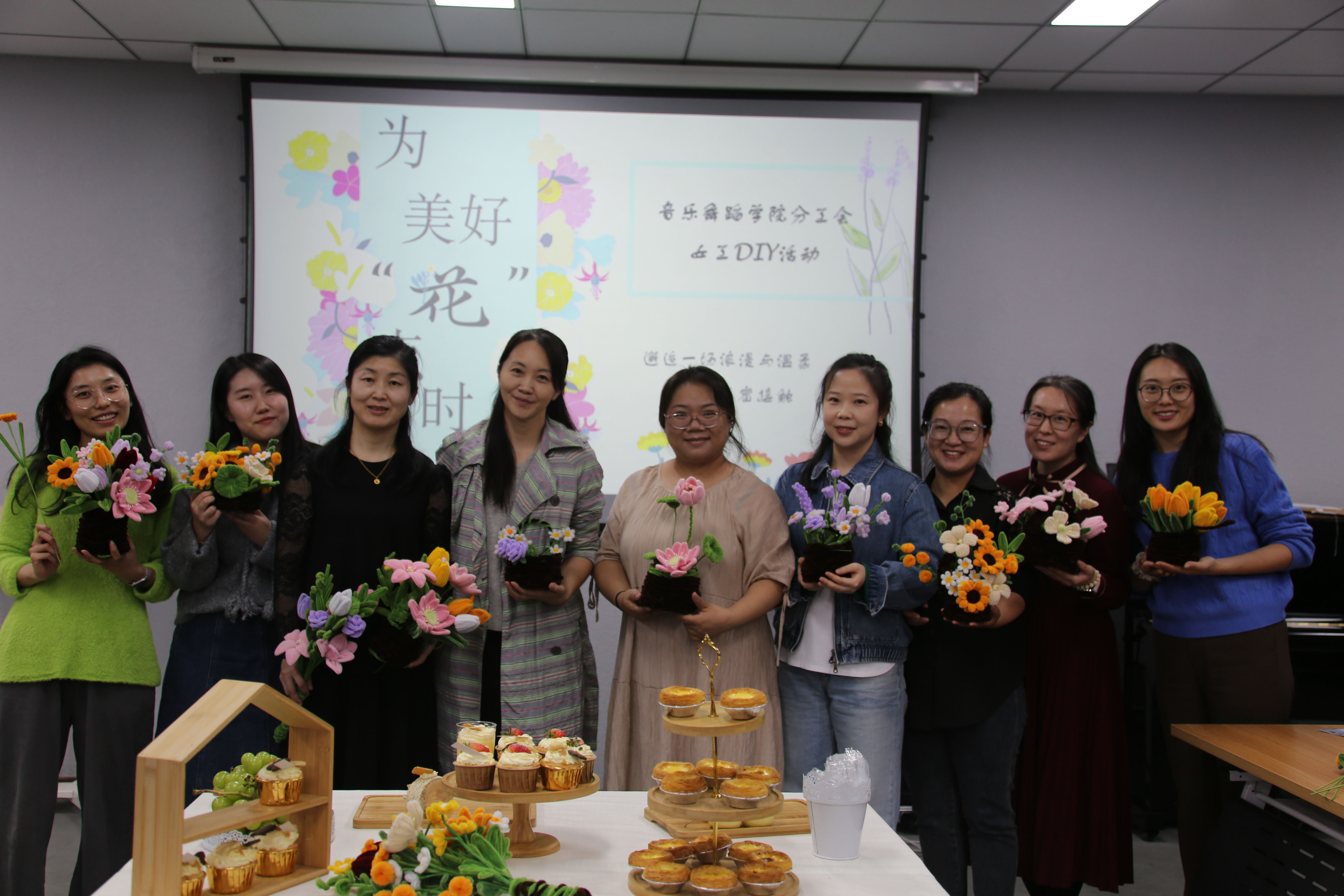 为丰富教职工课余文化生活,10月18日下午,我院工会在学院二楼会议室举办“为美好花点时间”DIY编织花活动,学院教师积极参与活动。