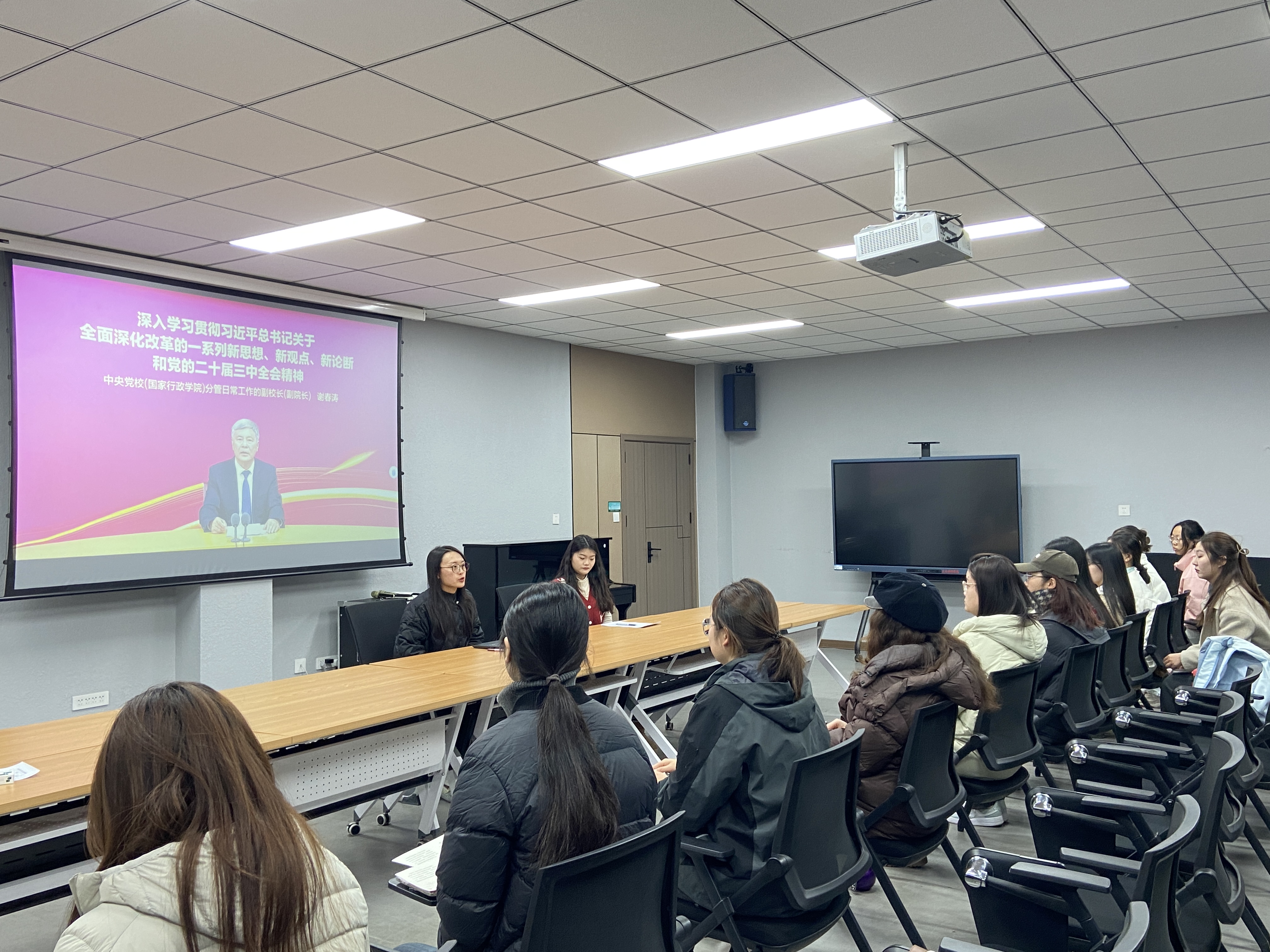 为了进一步深化全体党员对党的二十届三中全会精神的学习,不断加强党性教育,11月28日下午,我院学生第五党支部在学院二楼会议室开展“深化改革不止步,提质增效谱新篇”主题党日活动,全体党员参加。活动由党支部书记尚晓丹主持。
