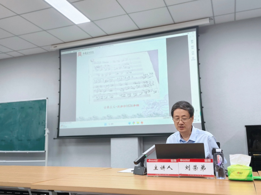 5月15日下午,西安音乐学院作曲系、西安培华学院艺术教育中心刘荣弟教授应邀做客“音舞名家大讲堂”,作题为《管窥欧洲乐谱历史——意大利朗读视唱教学研究》的学术讲座。本次讲座在学院二楼会议室举行,由副院长师玉丽主持,学院骨干教师及研究生到场聆听。