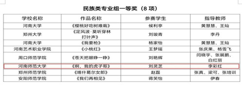 除上述获奖外,我院在民族类专业组中选送的另一首作品《青春舞曲》荣获民族类专业组二等奖;在美声类专业组方面,我院选送的《咪咪的告别》和《秋风词》两个作品分获二等奖和三等奖;器乐专业组比赛中我院选送作品《烟花易冷》荣获器乐专业组二等奖。舞蹈专业组比赛中,我院选送的作品《一抹红》荣获舞蹈专业组二等奖。