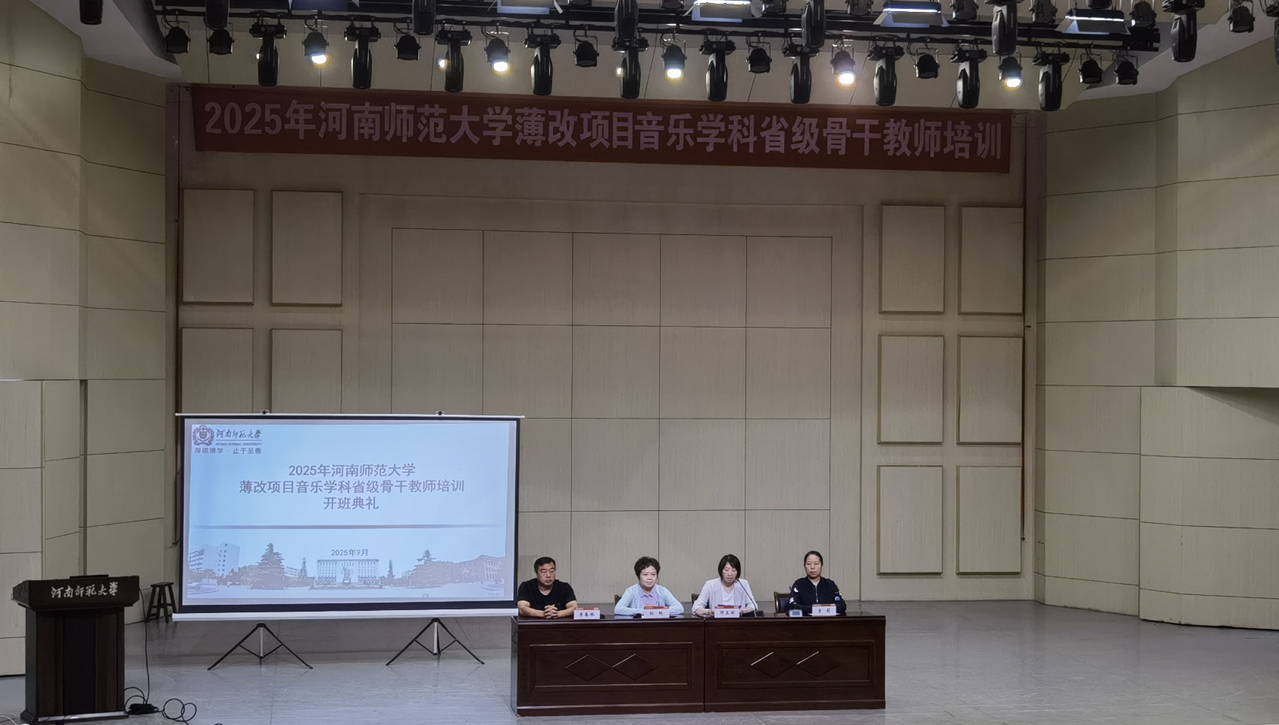 9月16日上午,2025年河南省薄改项目音乐学科省级骨干教师能力提升培训开班仪式在帕瓦罗蒂音乐厅举行。本次培训主题为音乐骨干教师戏曲教学能力提升。音乐舞蹈学院副院长师玉丽,培训班学科班主任吉莉,生活班主任孙艳、李春桥及全体学员参加仪式。仪式由孙艳主持。