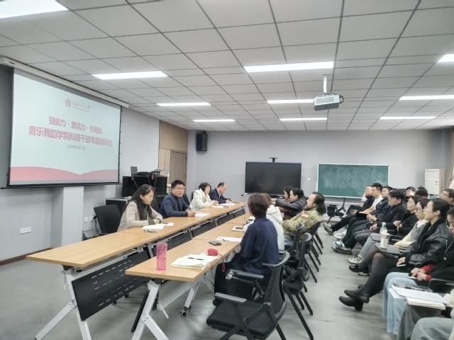 罗强在总结讲话中强调,科级干部是学院发展的中坚力量,必须准确把握角色定位,全面落实“强管理、强安全、强队伍、强能力、强学科、强品牌、强实践、强交流”的“八强”要求,在服务学院大局中实现个人与事业的共同成长。他指出,一要构建治理体系,紧跟时代脉搏。坚持以党建引领为核心,全面推进文化建设、制度建设、队伍建设和学科建设,优化教学管理、学生管理和科研管理,强化行政服务保障,形成学院独具特色的“1431”科学治理体系;二要聚焦学科建设,打造核心竞争力。在巩固现有优势基础上,梳理学科方向,推动音乐与舞蹈交叉融合,积极对接国家文化战略与区域艺术需求,培育新的学科增长点,细化学科发展实施方案;三要强化教学质量,夯实人才培养根基。优化课程体系,增加实践教学比重,推动舞台经验与科研成果转化为优质教学资源,将“以生为本”理念贯穿教育教学全过程;四要激活管理效能,提升服务保障水平。进一步明晰职责边界,优化工作流程,加强跨部门协同,以“服务者”心态主动解决问题,提升管理效率与服务温度;五要凝聚团队力量,营造团结奋进氛围。建立“坦诚沟通、相互支持、携手共进”的工作关系,形成“心往一处想、劲往一处使”的良好局面,共同建设有凝聚力、有归属感的奋进集体。