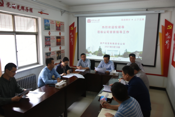 5月10日,校党委常委,副校长李雪山带队一行到资产经营有限公司督察指导2020年书记校长任中经济责任审计整改完成情况,校党办主任秦法跃、审计处处长宋鲁伟,校办副主任郭文芳、审计处副处长李兆龙,审计处经济责任审计科王世威,公司领导班子参加了汇报督察会。