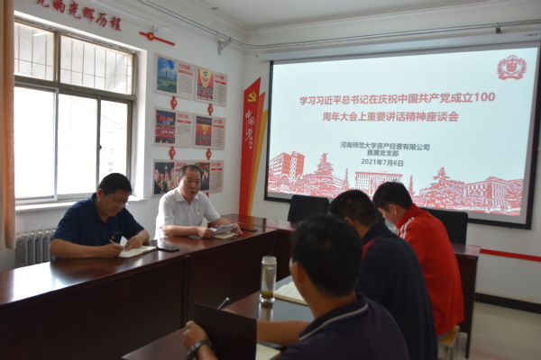 7月6日下午,资产经营有限公司直属党支部在公司党建会议室召开支部理论中心组(扩大)会议,深入学习研讨习近平总书记在庆祝中国共产党成立100周年大会上的重要讲话精神。公司支部委员参加会议,会议由直属支部书记张新文主持。