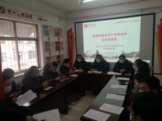 2月15日上午,资产公司2022年春季学期开学校园经营户疫情防控工作部署会在公司党建会议室召开。公司疫情防控指挥部工作专班,校园各经营户负责人参加会议。会议由公司总经理杨海山主持。