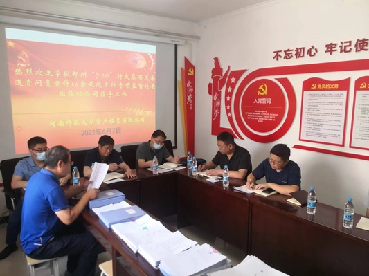 6月7日上午,以学校纪委副书记李杰为组长的校郑州“7·20”特大暴雨灾害追责问责案件以案促改工作专项监督检查组带领监察处李保华副主任、张一帆一行3人莅临公司检查指导工作。汇报会在公司三楼办公室进行,公司党支部书记张新文、总经理杨海山,公司全体人员参与会议,会议由公司党支部书记张新文主持。