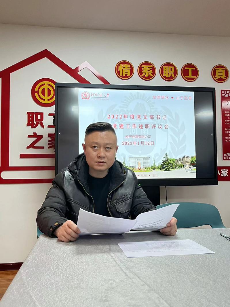 会上,张新文讲解了校党委组织部《关于开展2022年度党支部书记抓党建工作述职评议考核及“五星级党支部”考评工作的通知》要求,公司第一、第二党支部书记紧紧围绕学习宣传贯彻党的二十大精神,聚焦全面加强新时代高校党支部建设,从履行党支部党建责任情况、党支部建设情况、党支部战斗堡垒和党员先锋模范作用发挥情况、存在问题及改进措施等方面进行了认真汇报。