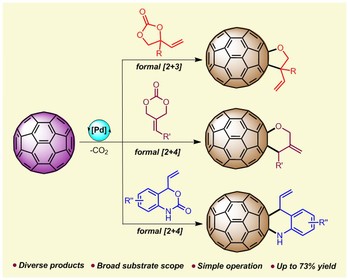 Qingfeng Liu, Tong-Xin Liu,* Yifei Ru, Xue Zhu, and Guisheng Zhang*, Palladium-catalyzed decarboxylative heterocyclizations of [60]fullerene: preparation of novel vinyl-substituted [60]fullerene-fused tetrahydrofuran s/pyrans/quinolones