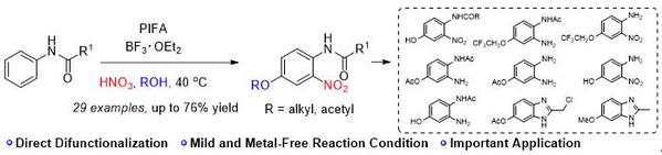 Wan, Y.; Zhang, Z.;* Ma, N.; Bi, J.; Zhang, G.* Acylamino-Directed Specific Sequential Difunctionalizations of Anilides via Metal-Free Relay Reactions for p-Oxygen and o-Nitrogen Incorporation. J. Org. Chem., 2018, 84, 780-791 (Record by Organic Chemistry Portal. Please see: https://www.organic-chemistry.org/Highlights/2019/14October.shtm). https://doi.org/10.1021/acs.joc.8b02636