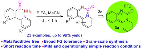 Gao, W.; Wan, Y.; Zhang, Z.;* Wu, H.; Liu, T.; Zhang, G.* The Hofmann reaction involving annulation of o-(pyridin-2-yl)aryl amides selectively and rapidly leads to potential photocatalytically active 6H-pyrido[1,2-c]quinazolin-6-one derivatives. Green Chem., 2020, 22, 7955-7961. https://doi.org/10.1039/d0gc02777d
