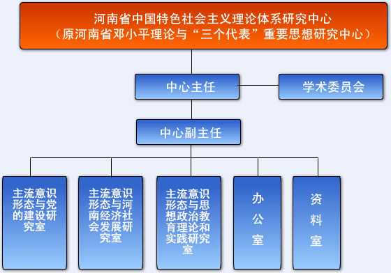 2、研究机构 中心设立3个研究室。即,主流意识形态与党的建设研究室,主流意识形态与河南经济社会发展研究室、主流意识形态与思想政治教育理论和实践研究室。