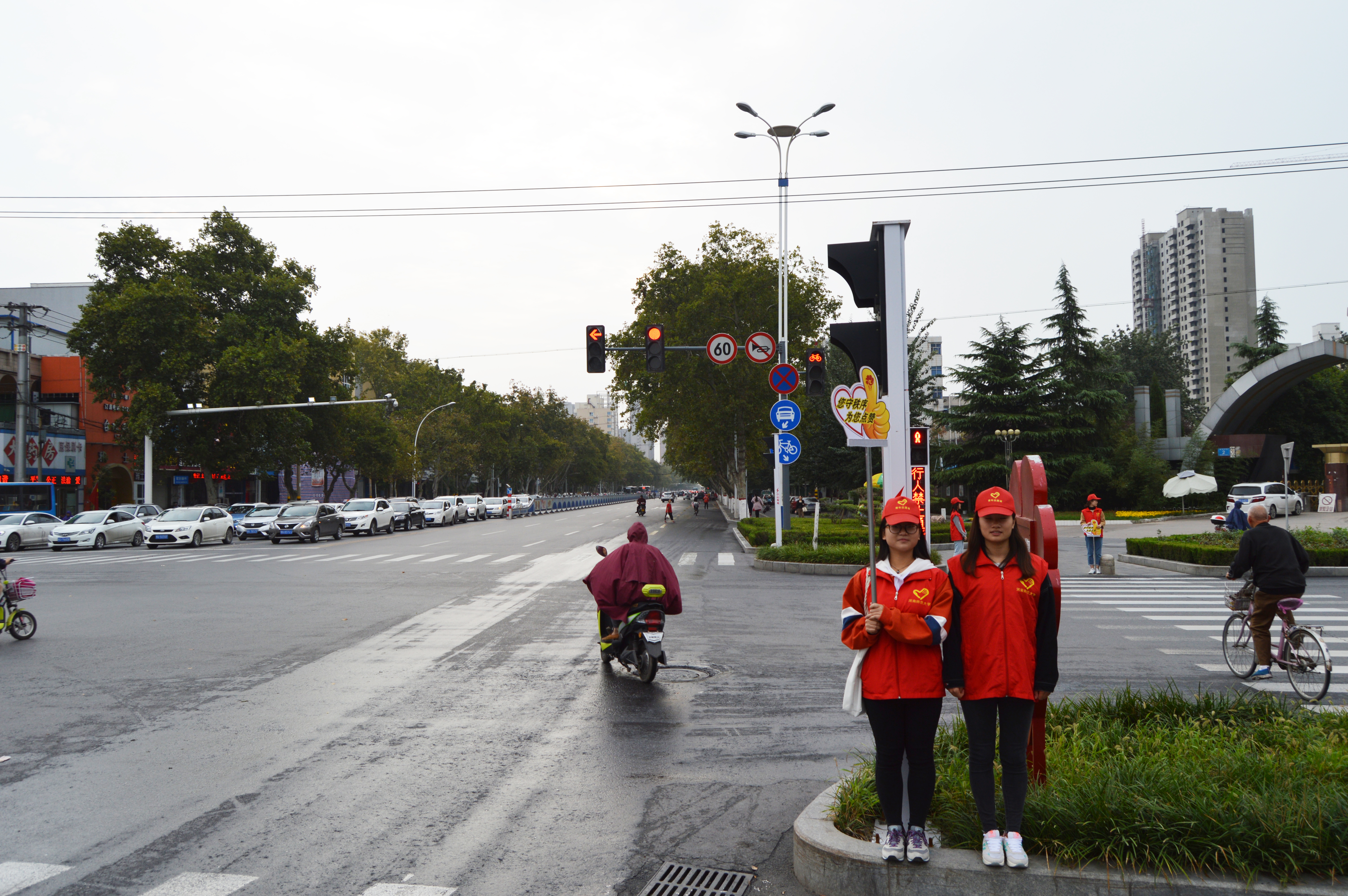 9月27日上午,由政治与公共管理学院团委学生会志愿服务部组织的文明执勤活动在宏力大道与胜利路交叉口展开。2016级、2017级部分学生参与其中。