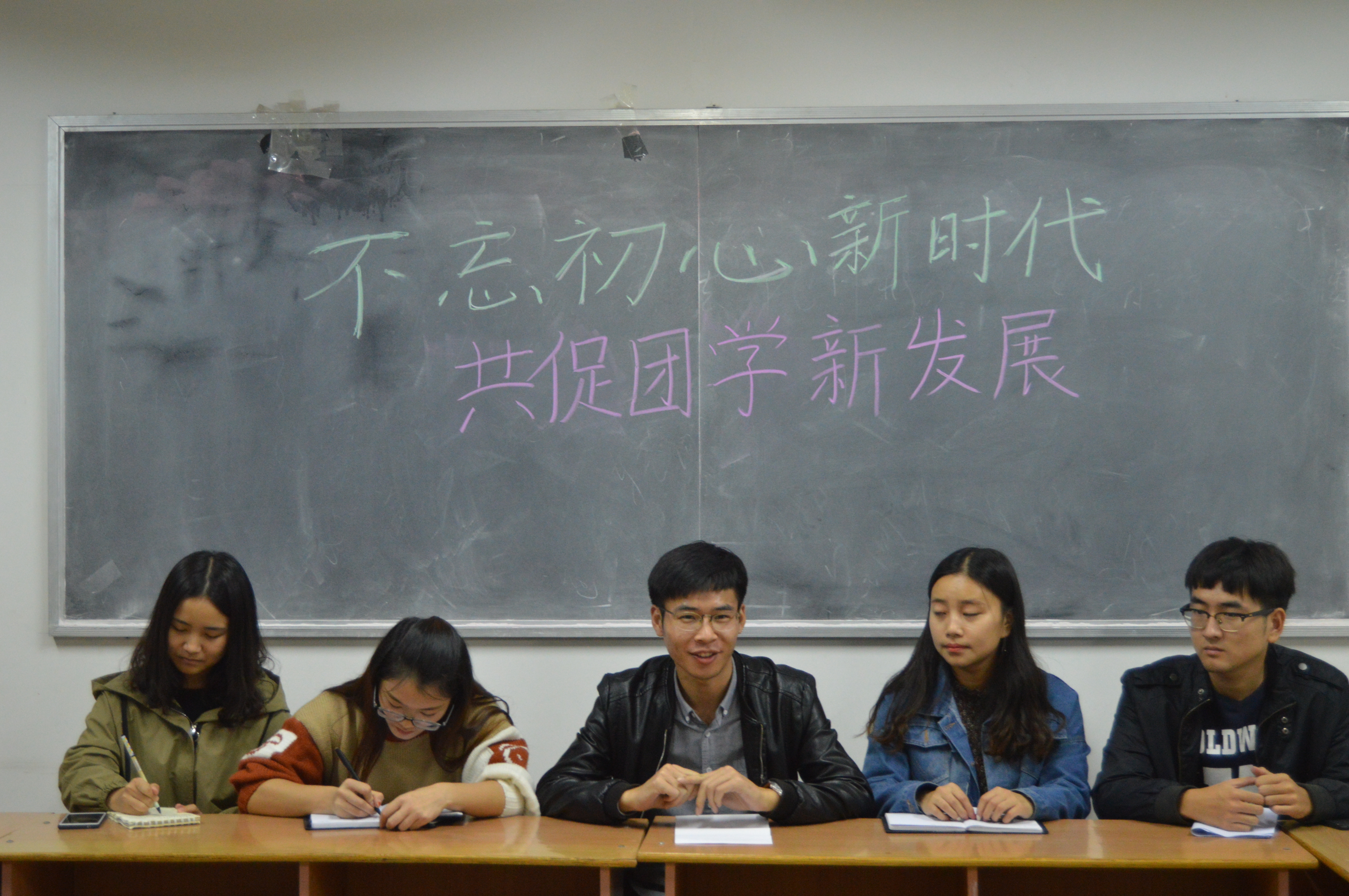 会上,学院团委学生会主席何帅带领大家学习《高校共青团改革实施方案》,了解建设以共青团为团学组织核心,学生会和学生社团两个圆环分层紧密围绕的“一心双环”团学组织格局。他认为,整个团学组织要以十九大精神为指导,不忘初心、牢记使命,团结带领广大学生坚定理想信念,脚踏实地,构建“一心双环”团学组织格局,展现学生会工作风采。就团学建设,他具体介绍了团学信箱和团学问答会两个活动形式,以此强化团委学生会“维护学生权益”的职责,在现有模式上与班委以及社团共建“团学大家庭”。学院团委办公室主任胡家琳区分了班长与团支书的区别,促进“班团”一体化,认为作为团干有引领学院学生奋发有为的责任,并希望团学、班委以及社团担负起引导学生听党话、跟党走的政治任务,时刻与学生心连心,做学生满意的团干部。