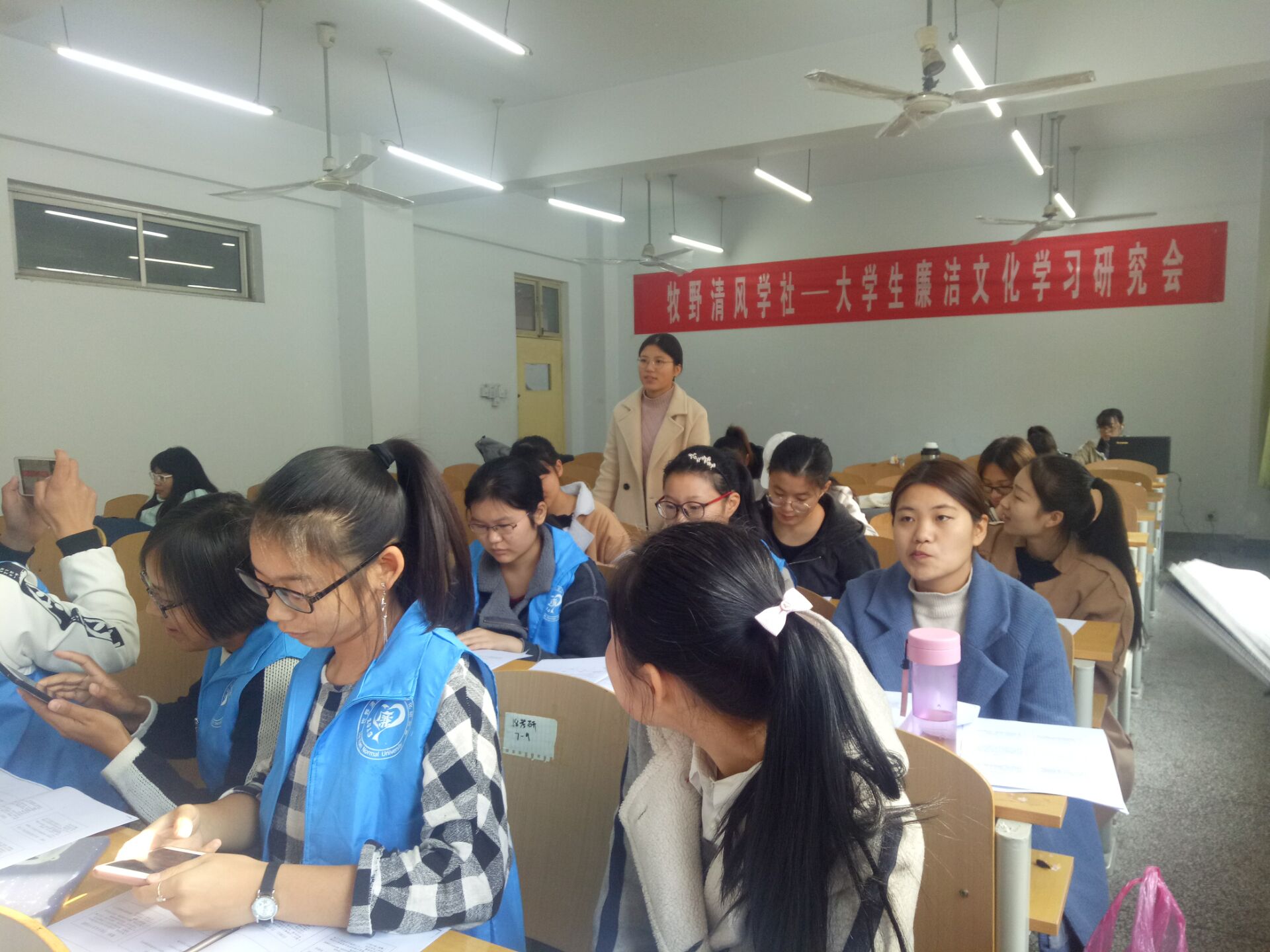 11月11日上午,政治与公共管理学院牧野清风学社在文渊楼225教室举办了以“共筑清风正气,廉洁你我同行”为主题的理论学习会议。社团理事与社员积极参与其中,共同学习讨论反腐倡廉理论。