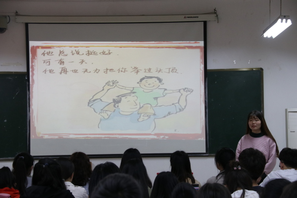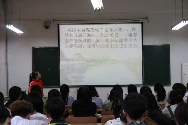 比赛期间,各具特色的PPT作品带来风格迥异的视觉盛宴。2016级公共事业管理专业刘琳的作品《父亲》令人动容,作品以父亲和孩子生活的点点滴滴为素材汇聚成一幕幕画面,触动心底最深情的柔软,引起共鸣。2017级思想政治教育专业张志莹《为你而做的PPT》设计精美华丽,以花都鄢陵、胖东来等名片为媒介精准展现家乡许昌的发展历程。比赛最后评定出一等奖一名,二等奖两名,三等奖三名。最后,环境学院网络部部长候雪怡做点评,她针对PPT展示作品的文字篇幅,图片摆放及背景音乐的设置进行纠正,并认为选手除了技巧熟练之外,同时也应当注重对台风的把控。