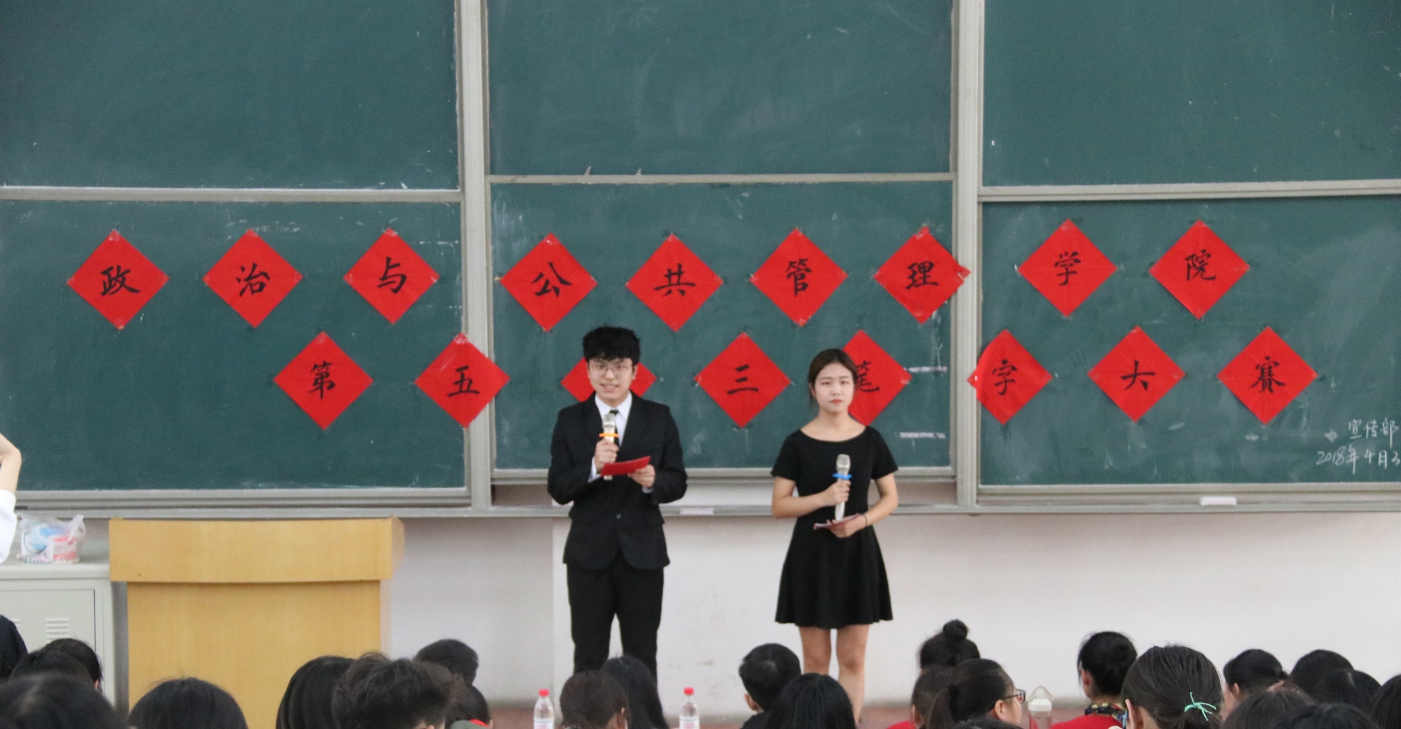 4月3日中午,由政治与公共管理学院团委学生会宣传部举办的“书峥嵘岁月,扬改革风帆”三笔字大赛于东教B102室举行。我校美术学院优秀研究生代表担任评委,学院学生二百余人踊跃参加。
