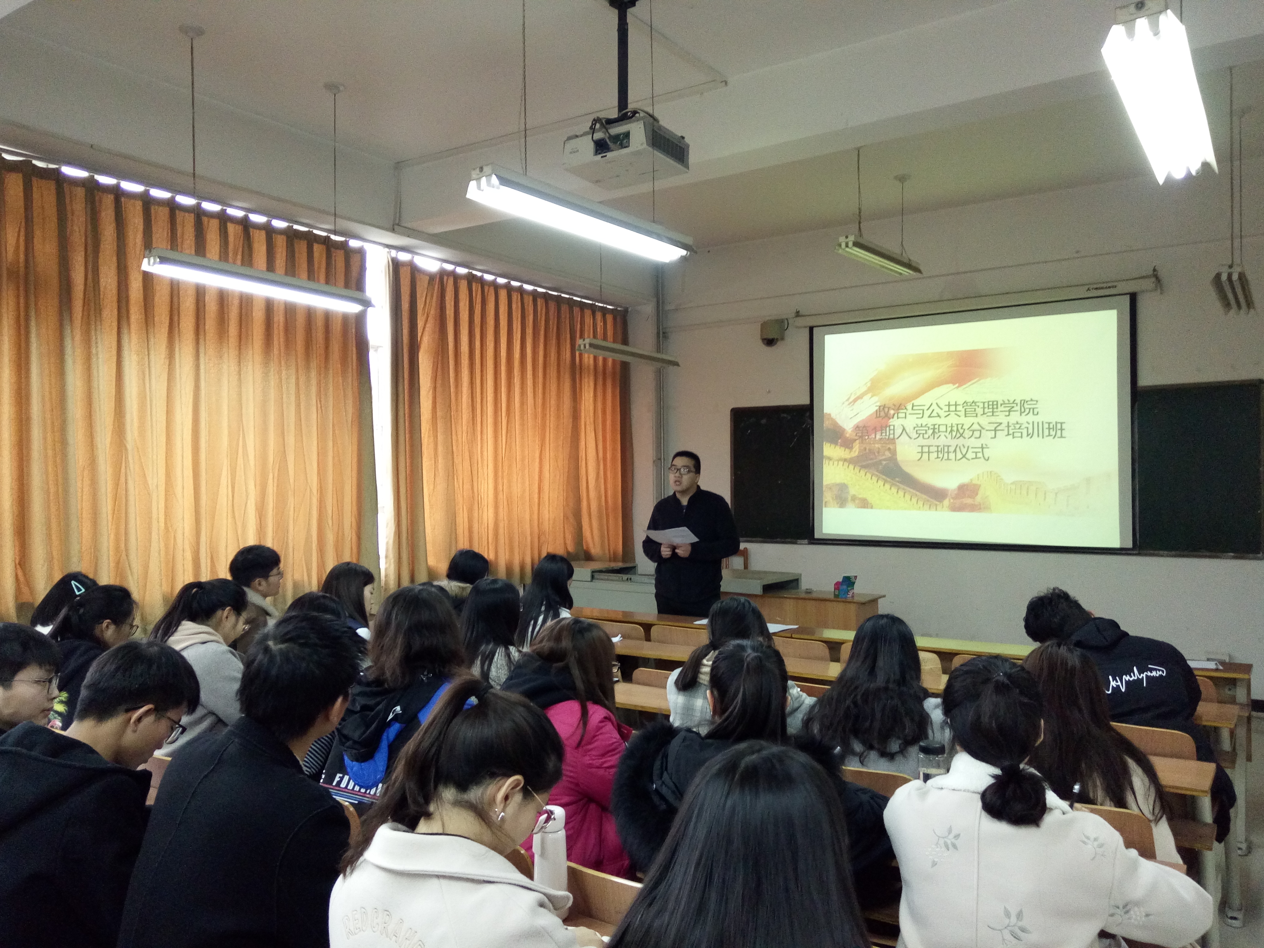 11月30日中午12时,我院党委在学院办公楼217会议室举办政治与公共管理学院分党校第1期入党积极分子培训班开班仪式。开班仪式由学院党委组织员马文韬主持,本期培训班55名学员参加了此次仪式。