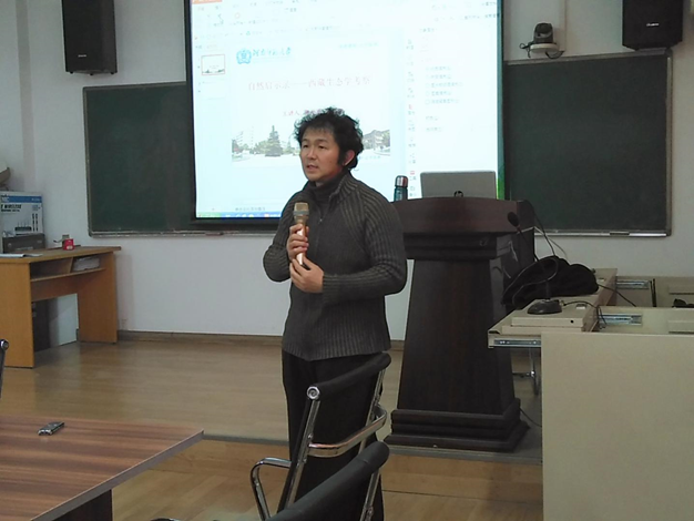 郭光普教授首先对个人研究领域做了简要介绍,并向我们讲述了自己与西藏的渊源。接下来郭教授为我们举例说明西藏的耕作方式、出行方式、建筑类型,着重通过狩猎时间投入与狩猎效率效益详细讲述了当地的狩猎状况以及危害,分析说明如何通过影响狩猎的因素来从源头控制,保护野生资源。同时郭教授展示了一系列壮观优美的图片,将一个神秘而又朴实的西藏展示在我们面前,带给了我们一场视觉盛宴。报告气氛活跃生动,最后得出我们应该尊重并敬畏自然,实现人与自然和谐相处的结论。在报告的互动环节,郭教授针对师生提出的问题作了深入而全面的解答,得到全体师生的一致好评。报告会在大家的热烈掌声中圆满结束!