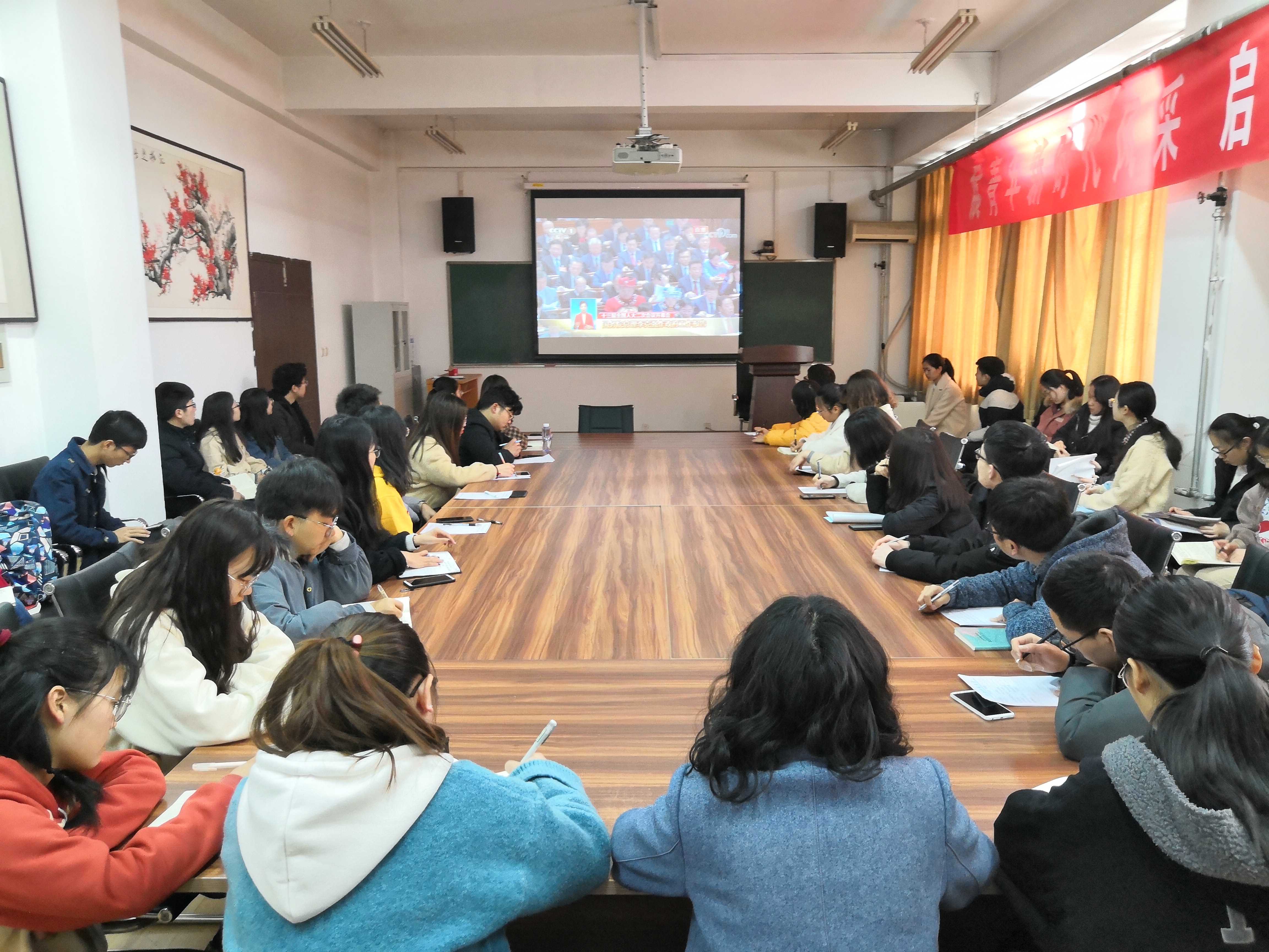 3月3日和3月5日,政治与公共管理学院组织学生在学院办公楼517会议室观看全国政协十三届二次会议和十三届全国人大二次会议开幕式直播。为深入贯彻“两会”精神,3月5日中午,学院组织学生代表集中学习讨论。