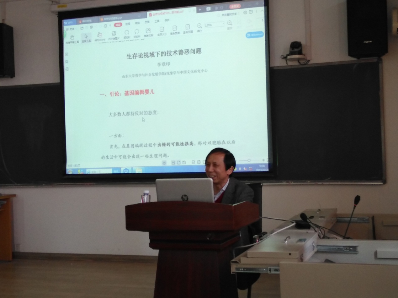 2019年4月28日上午九点,应伟德官网下载苹果版政治与公共管理学院邀请,山东大学李章印教授做了题为《生存论视域下的技术善恶问题》的专题报告。报告会由哲学学科带头人刘科教授主持并做总结。与会人员有冷天吉老师、安道玉老师、张保伟老师、张伟琛老师、陈四海老师、郑二红老师、陈子雷老师、于建东老师、李美林老师、张艳伟老师等,以及部分研究生、本科生。