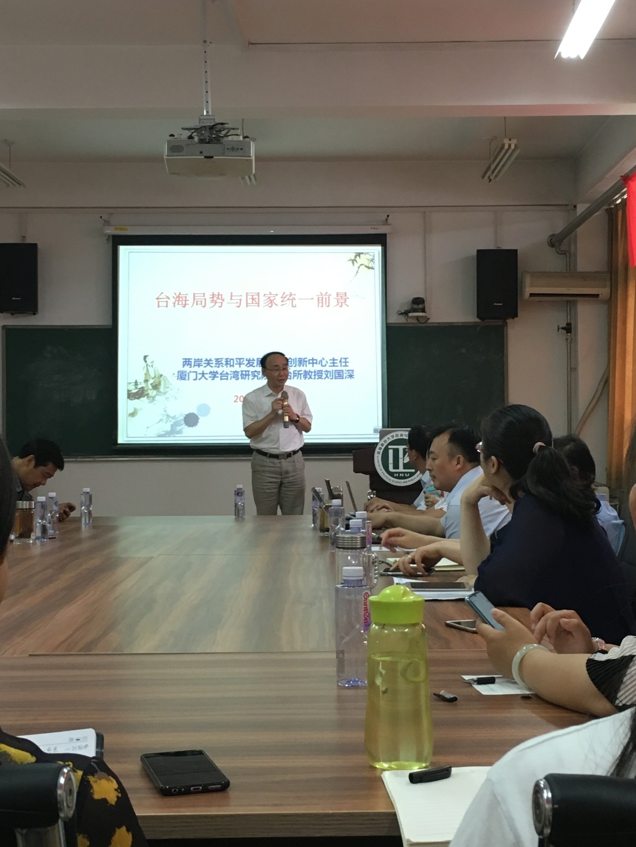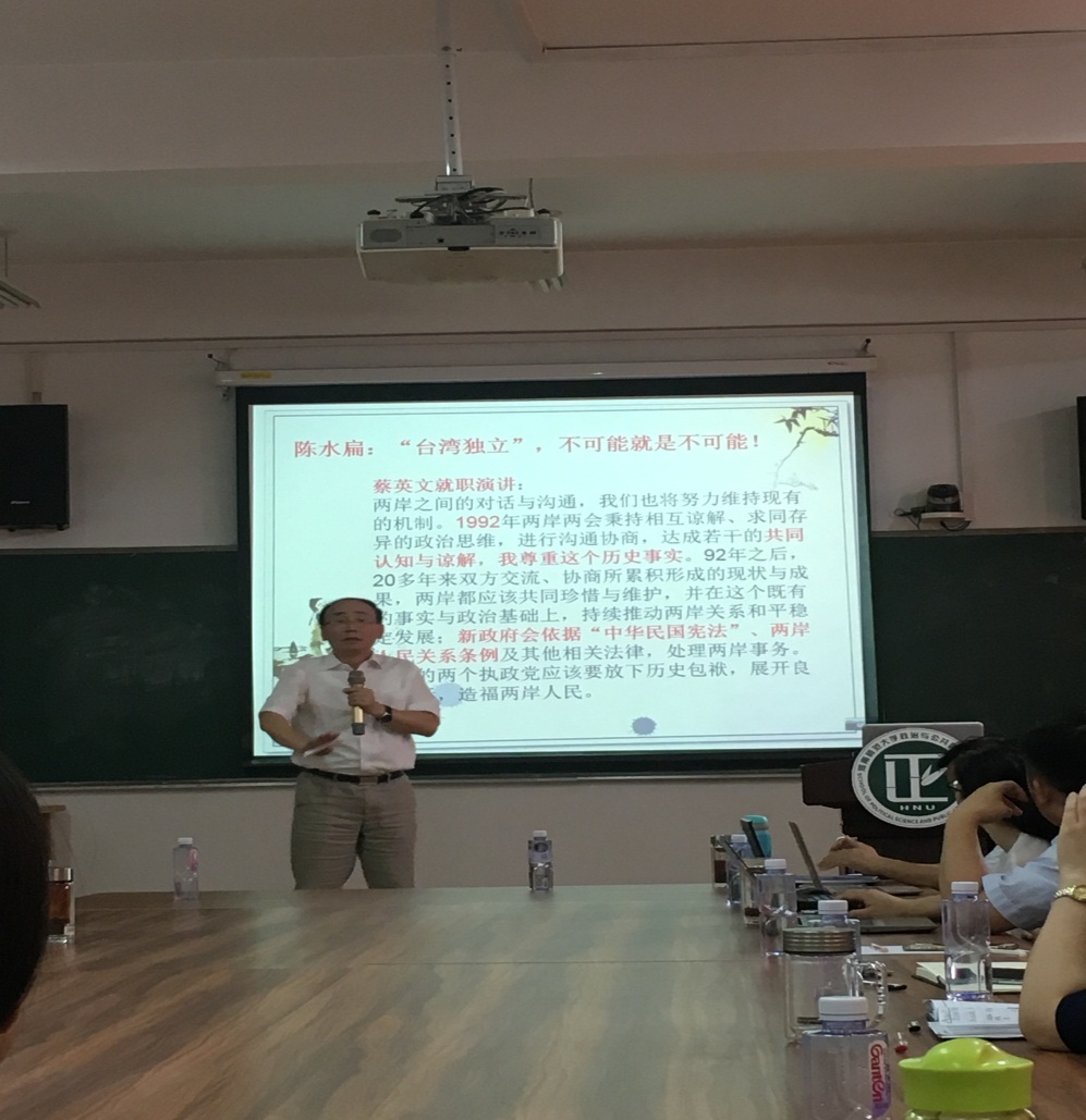 2019612日上午九点,应伟德官网下载苹果版政治与公共管理学院邀请,厦门大学刘国深教授为我院师生做了一场题为《台海局势与国家统一前景》的专题讲座。讲座由刘英基副院长主持,与会人员有政治与公共管理学院部分教师、研究生、本科生。