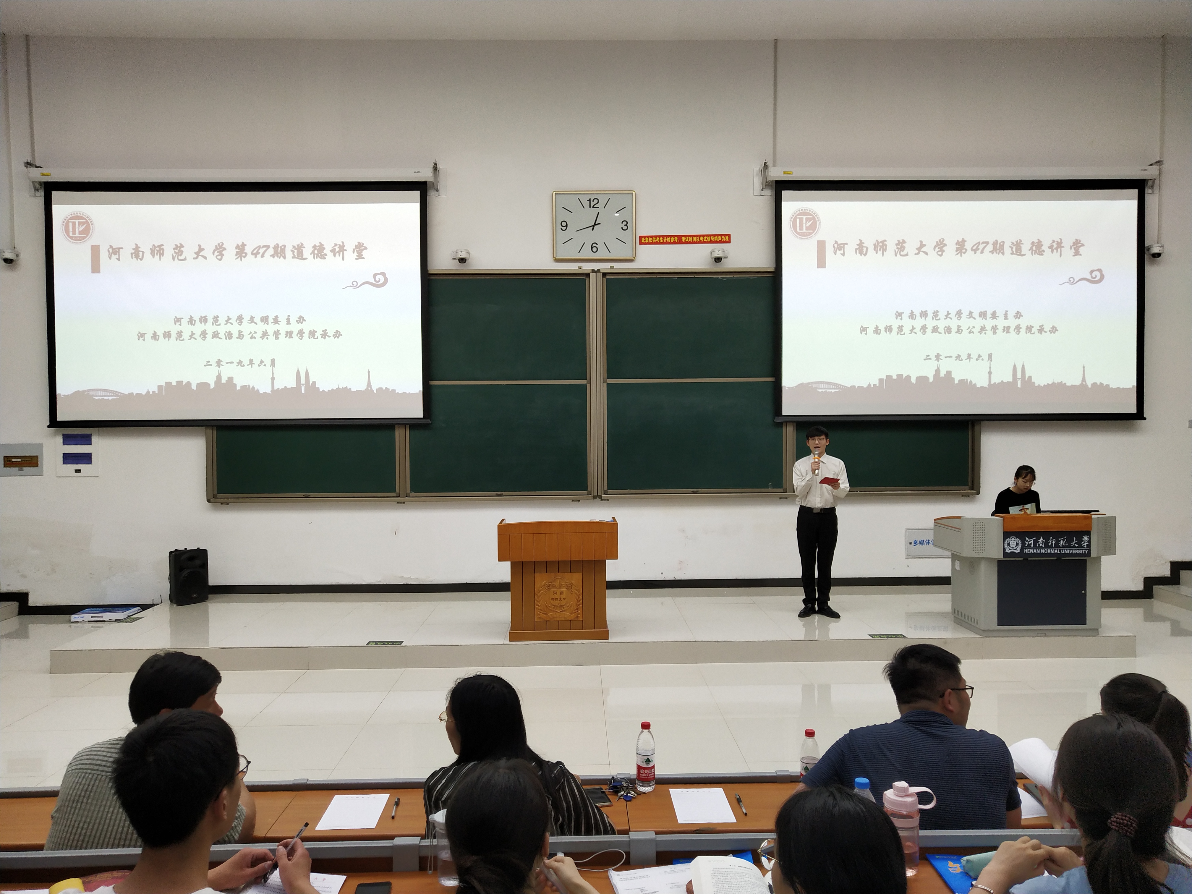 6月20日中午,由校文明委主办,我院承办的第47期道德讲堂在东区综合楼127室举行。学院党委书记杜灵来、副书记张瑾、师生代表200余人参加了活动。