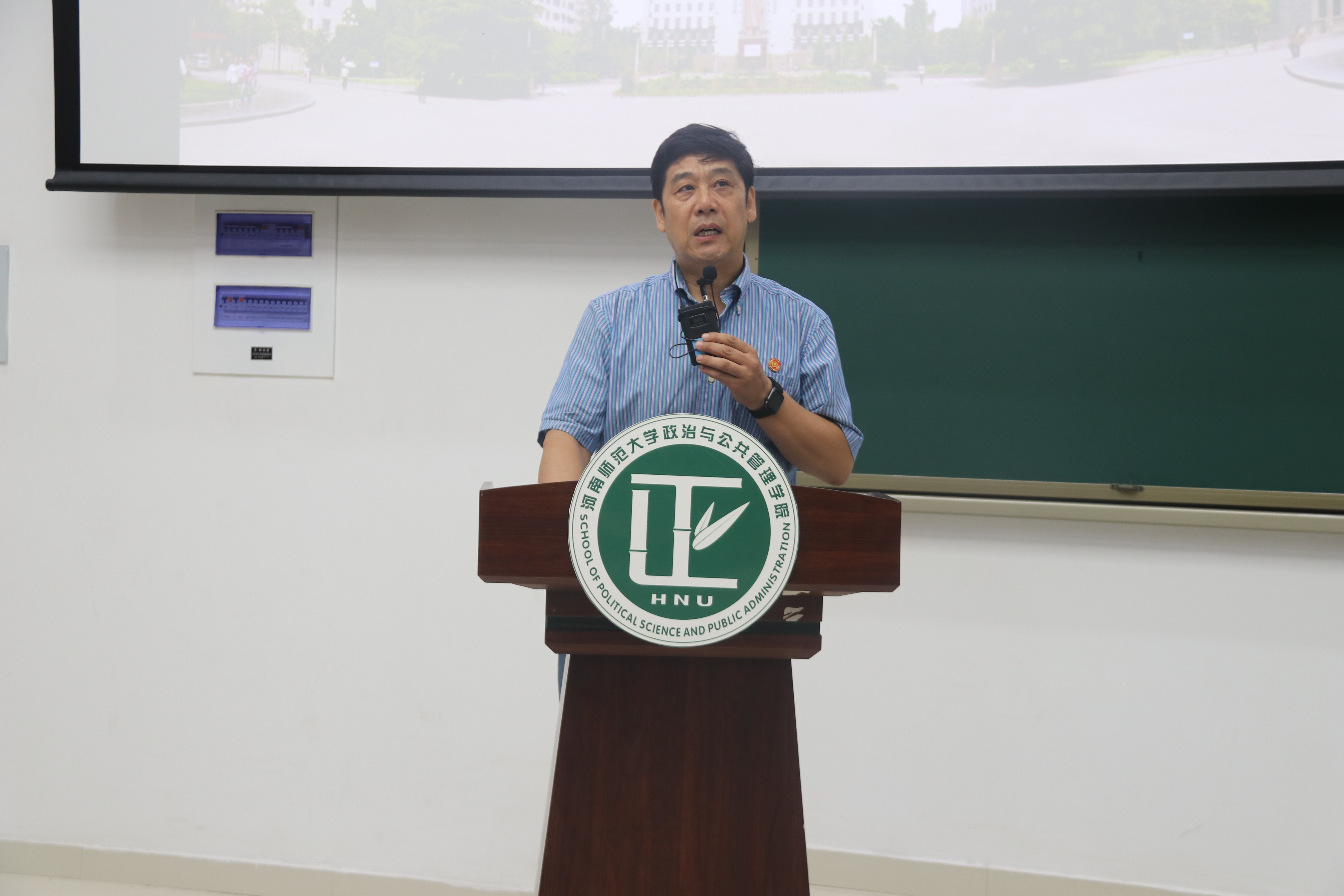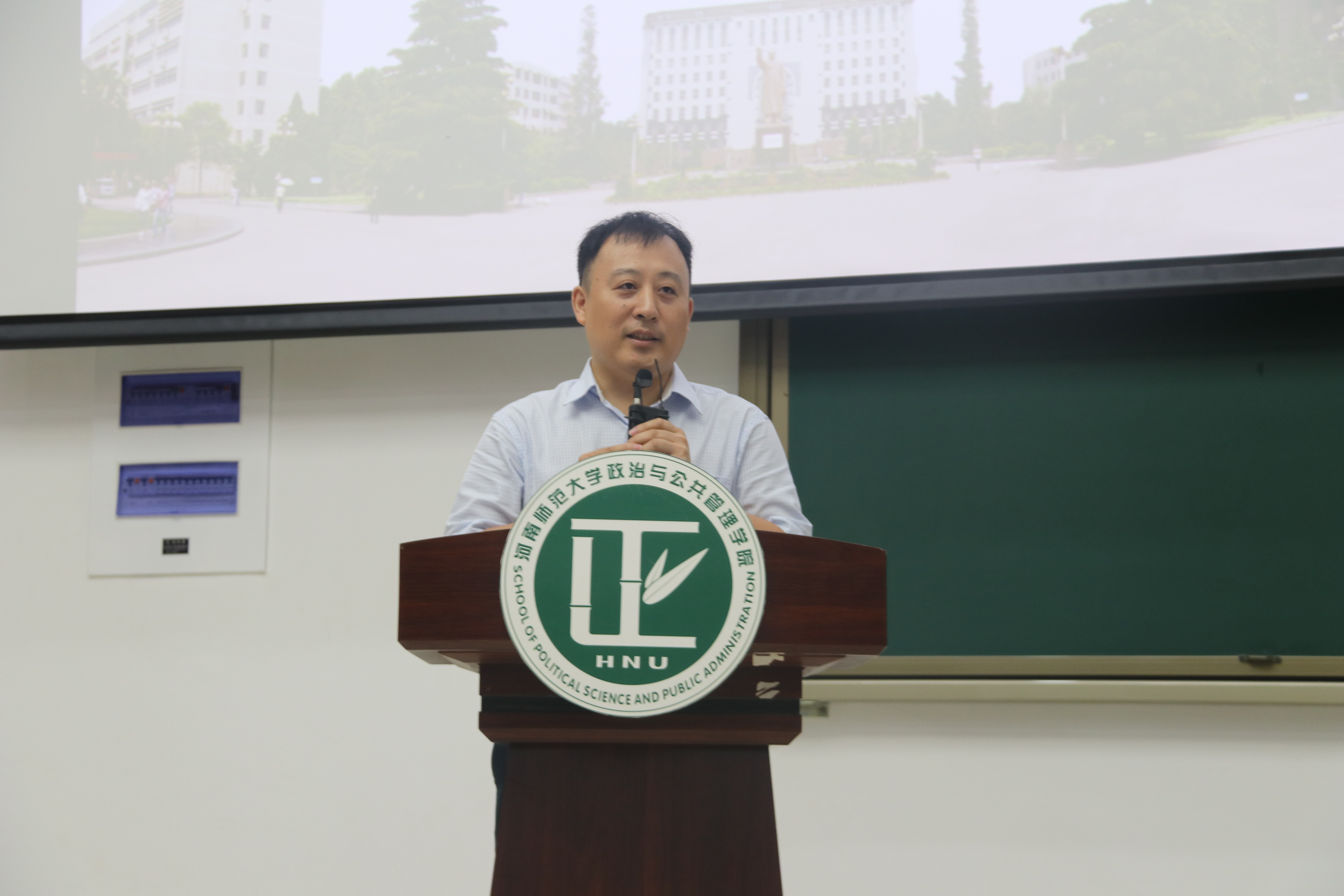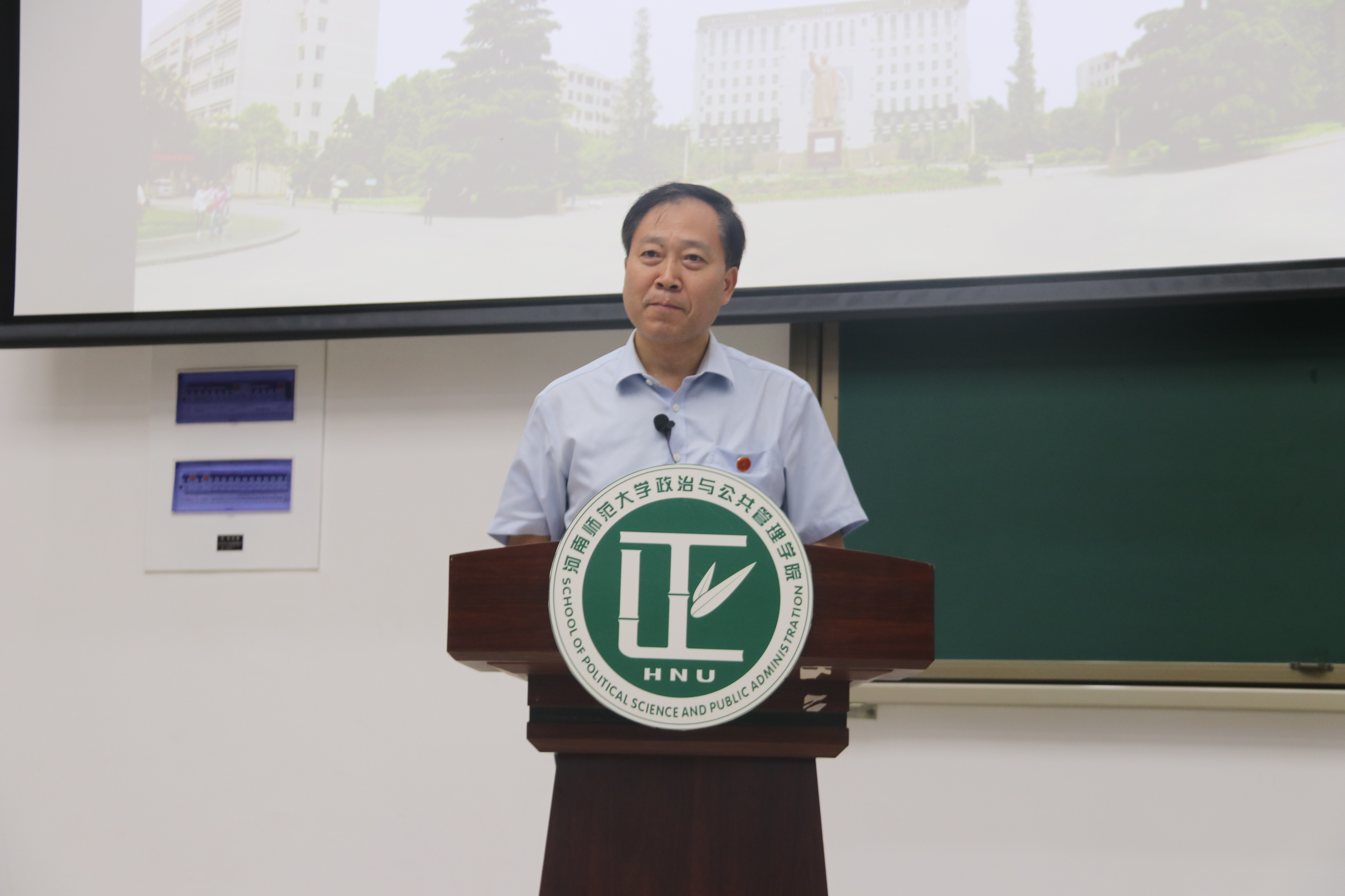 典礼在雄浑的国歌声中拉开帷幕。李洪河致辞,他首先对来自祖国各地的新生表示热烈欢迎并简要介绍学院的发展历史和学科设置。他希望新生能够积极适应新环境,合理规划学习生活,在成长过程中争做“有用之人”、“成功之人”,努力成为出色的“政管人”、优秀的“师大人”。