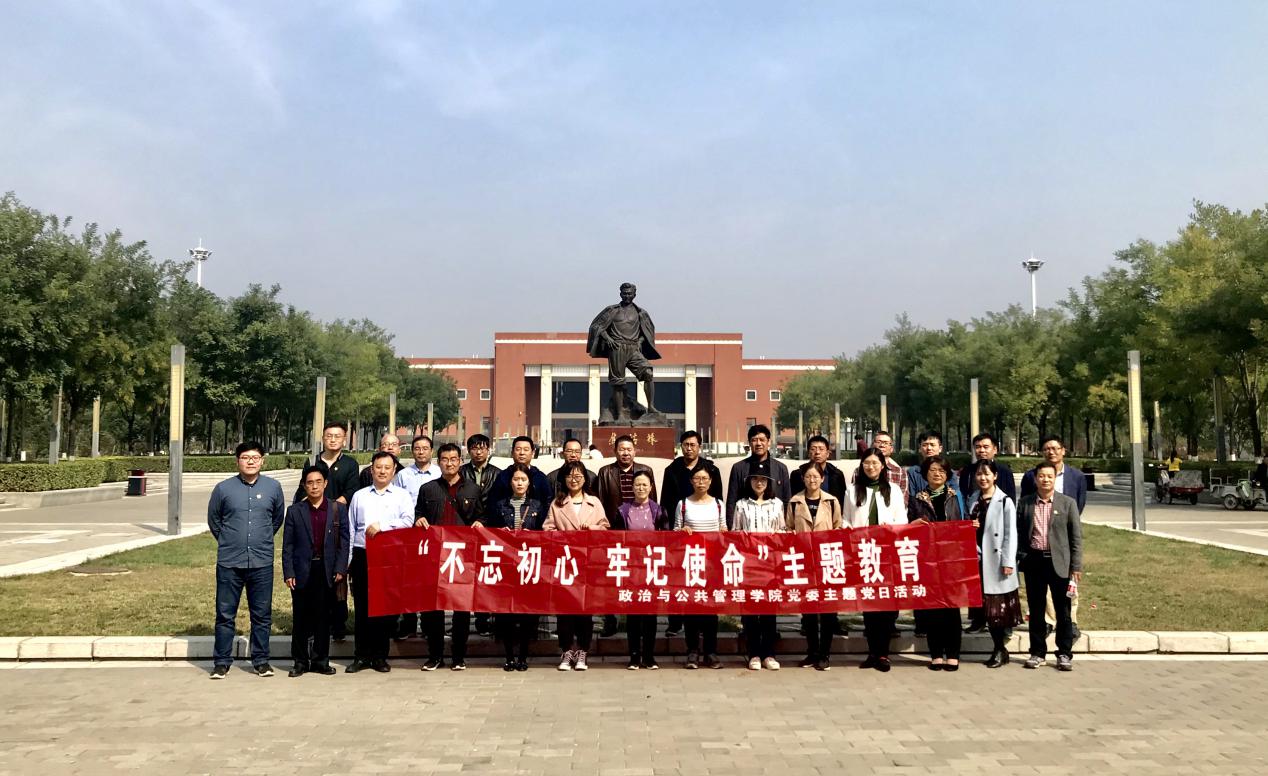 2019年10月20日,政治与公共管理学院在“不忘初心,牢记使命”主题教育期间,前往兰考县红色教育基地——焦裕禄纪念馆,开展主题党日活动。学院领导班子成员、各支部书记、各支部党员参与了此次活动。