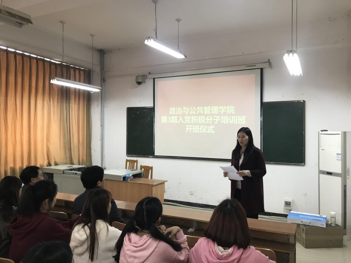 11月30日中午12时,我院在政管楼217会议室举办政治与公共管理学院分党校第3期入党积极分子培训班开班仪式。仪式由学院党委副书记张瑾主持,学院党委书记杜灵来、院长李洪河、组织员马文韬和本期培训班55名学员出席了开班仪式。