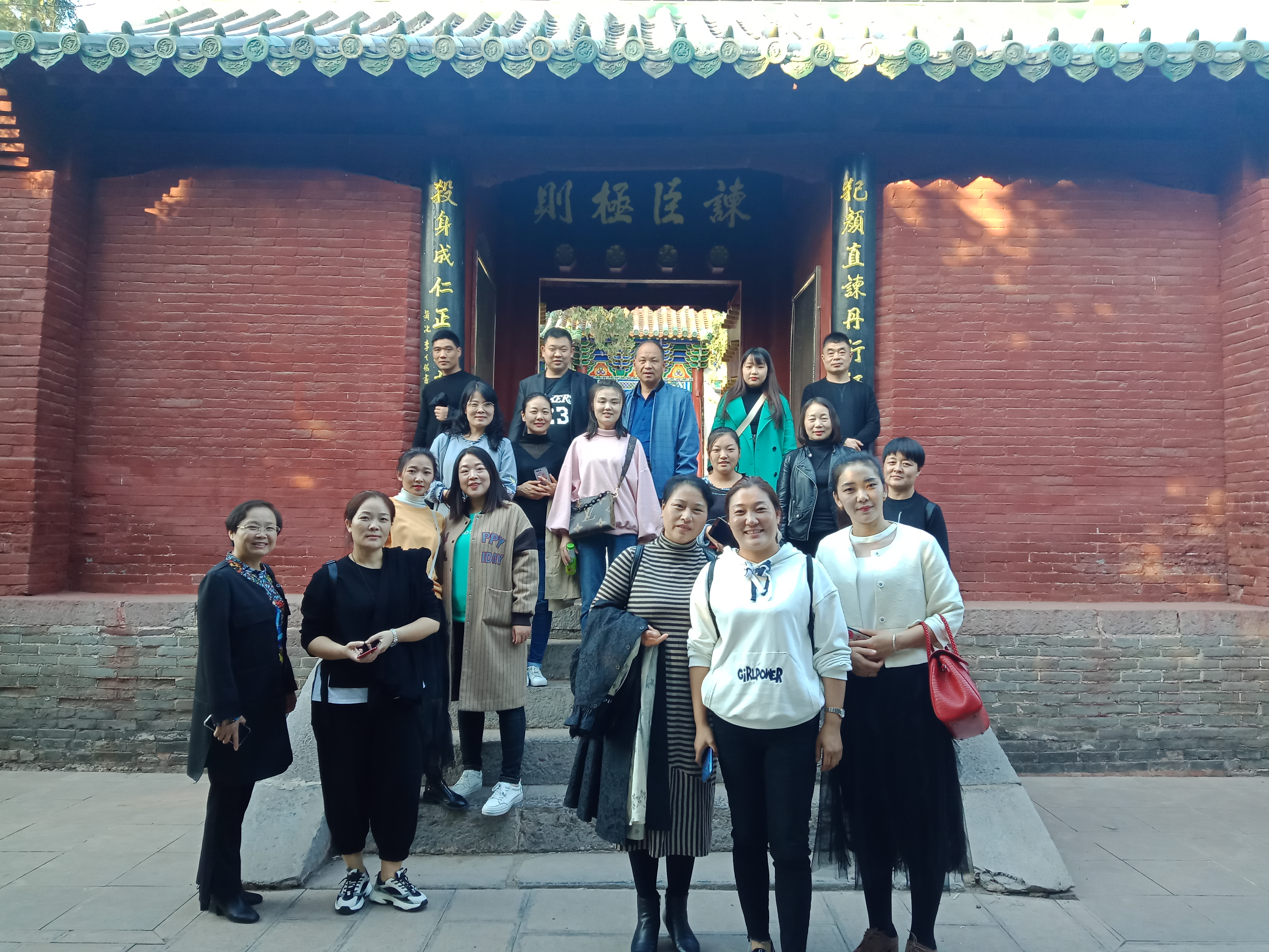 比干庙是中国第一座含墓祭人的祠庙,宏伟的比干庙牌坊、伟岸的比干像、古朴的照壁无一不展现着“天下第一庙”的巍峨壮观。比干庙二门之上匾额大书“谏臣极则”四字体现了历代文人对于比干忠义精神的认可,而至今遗留庙中的64座碑文题咏,更是体现出人们对我国有史记载的第一位忠臣的景仰。各位学员在讲解员的解说下更深层次地接受了爱国主义与廉政教育学习,在接受爱国精神熏陶的同时也对廉政文化也有了更加深入的了解。