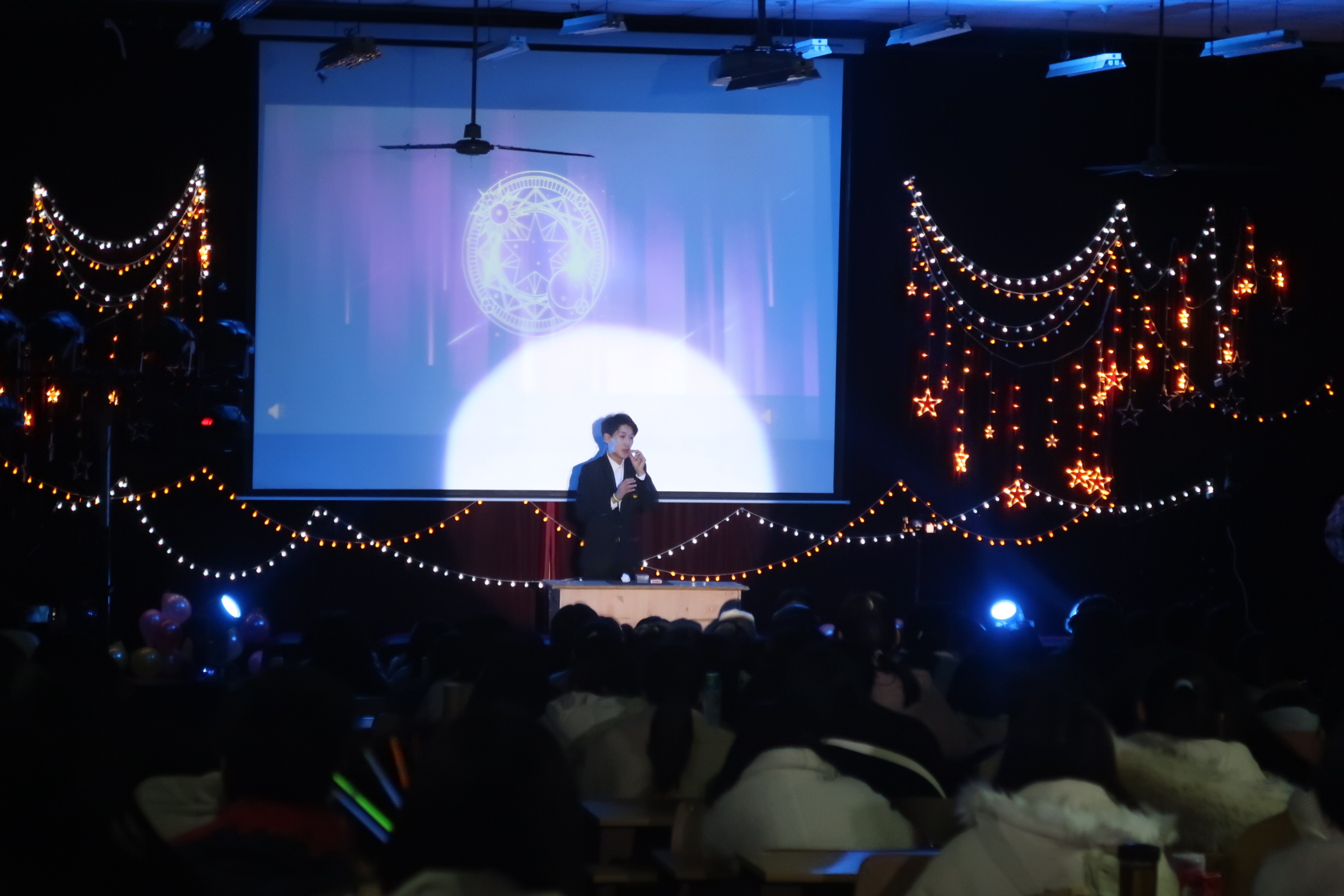 由易昊冉带来的魔术表演《观星者》,牵引着在场师生探寻求索的好奇目光,带领大家完成了一次奇妙之旅,引得观看学生拍手称赞。欢快时光一闪而过,晚会在亦动感亦抒情的歌曲串烧《目不转睛+异乡人+世间美好与你环环相扣》中落下帷幕。