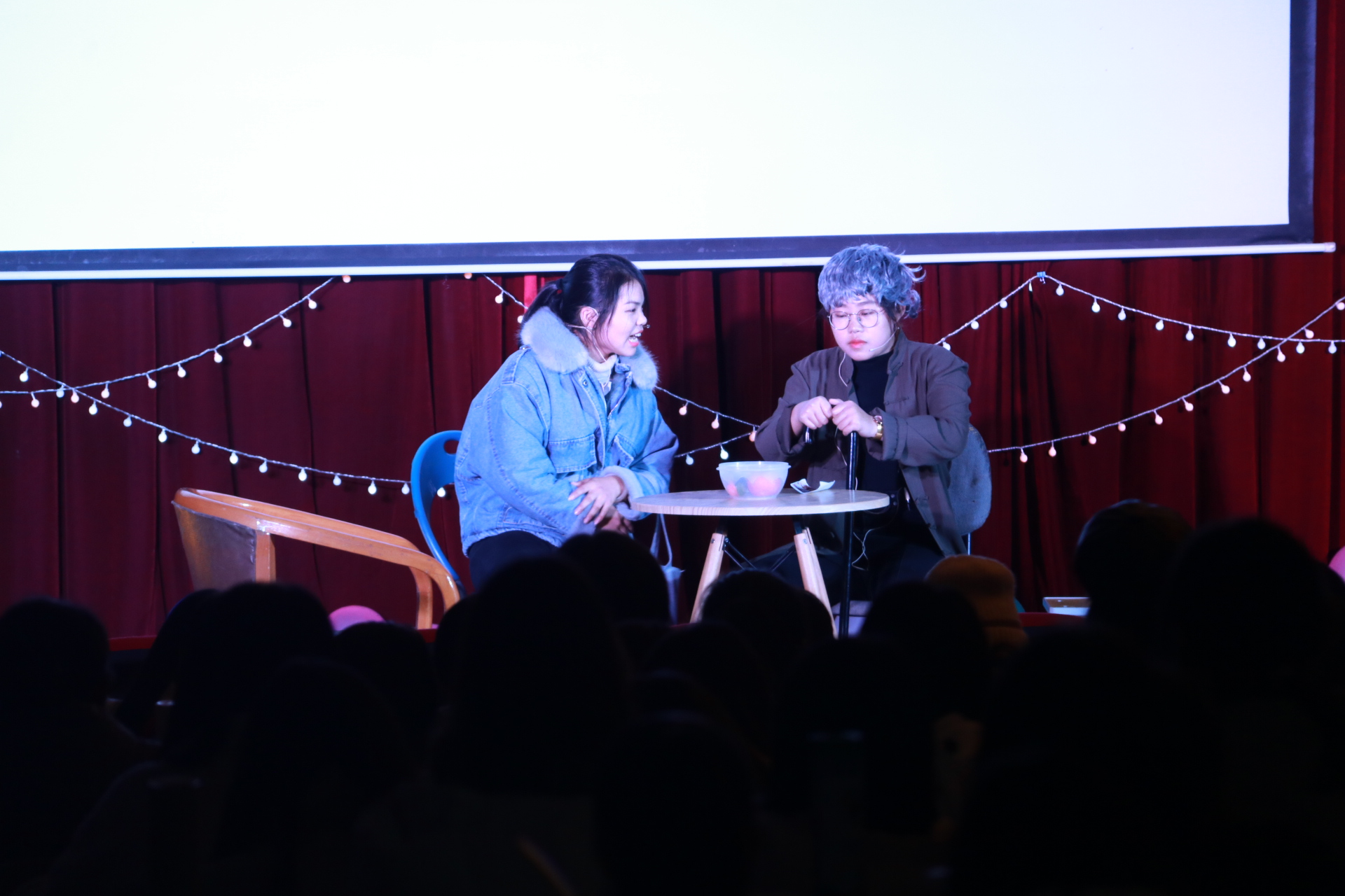 由2018级思想政治教育二班刘佩霞、赵雪婷等人带来的小品《真假老师》,讲述一次偶然家访中的趣味故事,在引得观众捧腹大笑的同时激发学生关于金钱与陪伴的思考,告诫在场师生陪伴是最长情的告白。