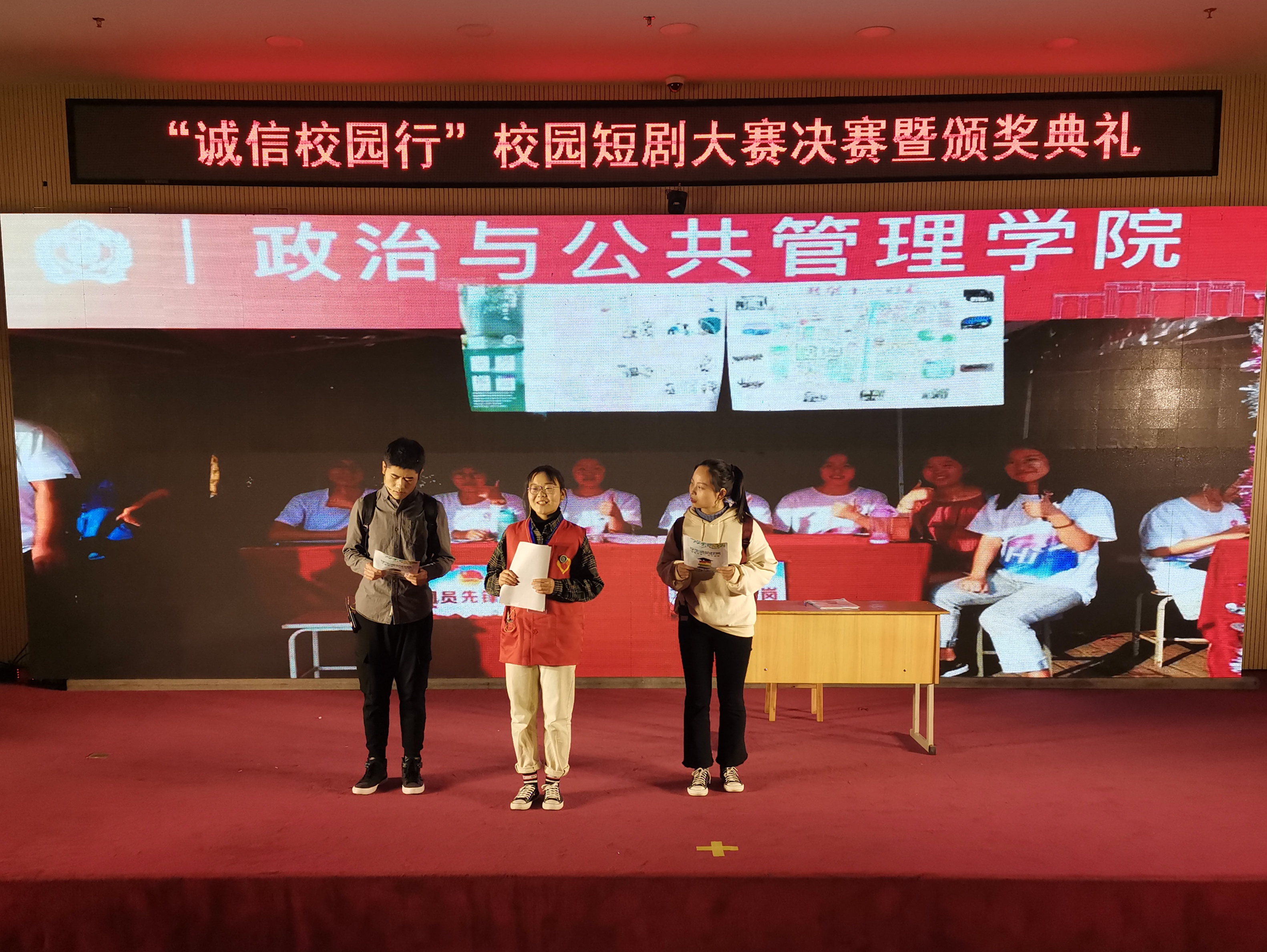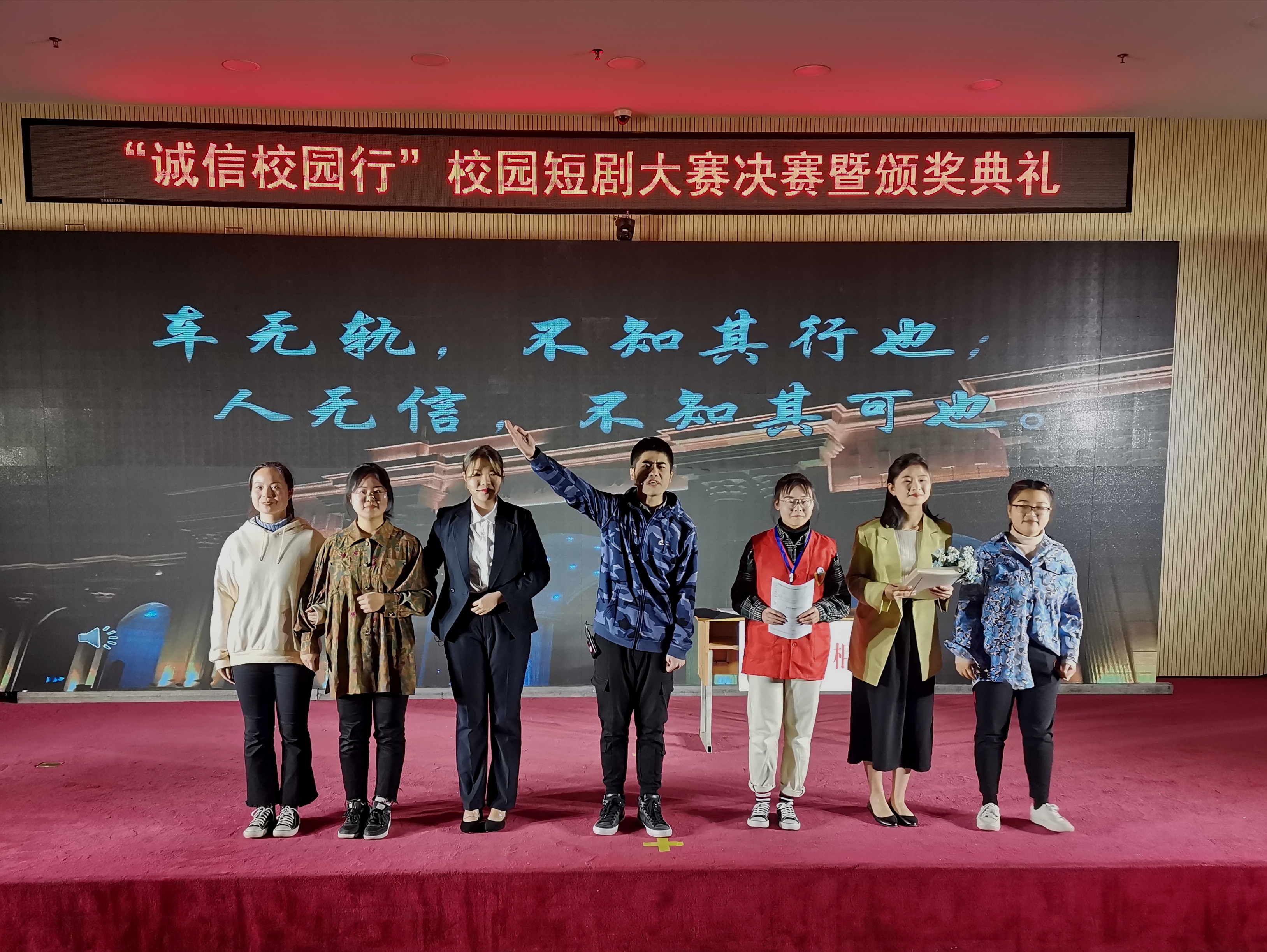 诚信赢未来,奋进新时代。12月19日晚,由校党委学工部、学生处、学生资助处服务中心主办,旅游学院承办的“诚信校园行”校园短剧大赛决赛于思想政治理论教学实践平台举行,我院参赛团队携情景剧《以诚相贷》参演其中,喜获佳绩。