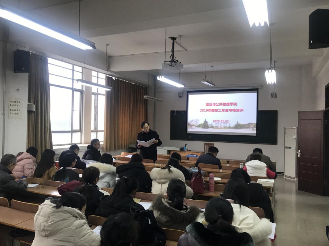 2020年1月2日下午,政治与公共管理学院2019年教职工年度考核工作测评会议在学院217会议室召开。学院领导班子及全体教职工参加了本次会议。会议由政治与公共管理学院院长李洪河主持。
