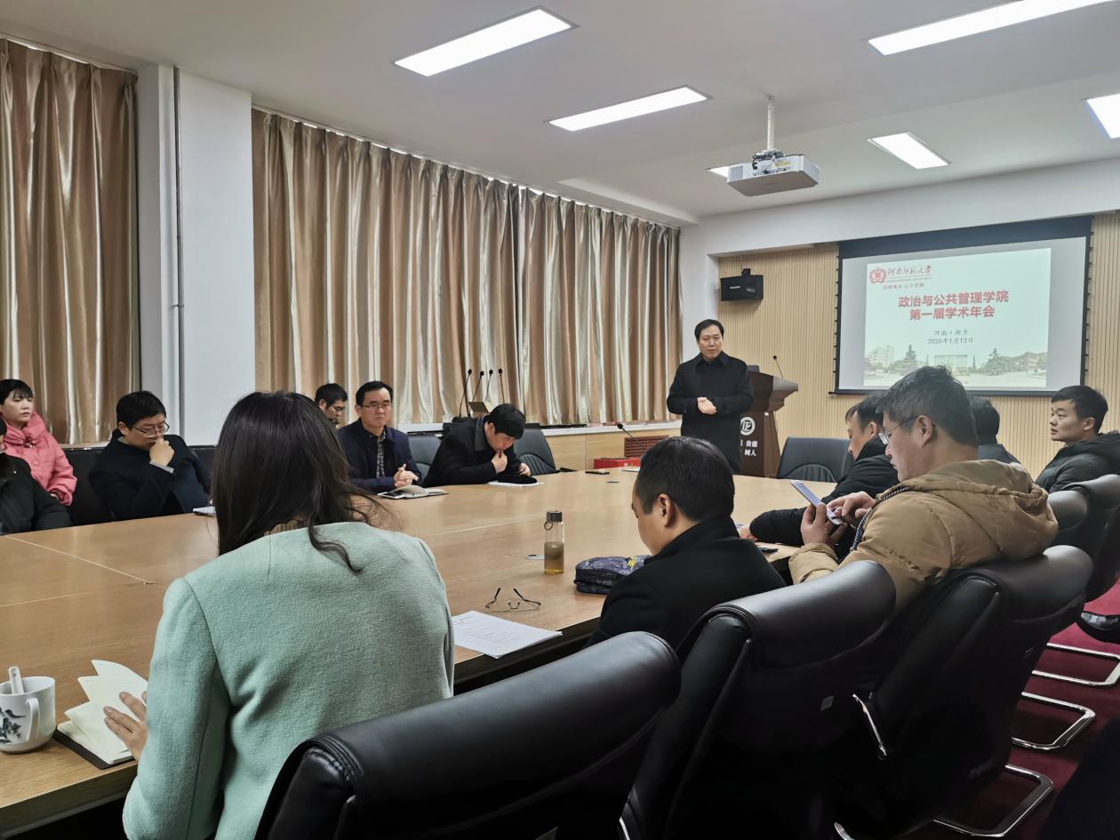 1月13日,由我院主办,河南省中国特色社会主义研究中心、科技与社会研究所、公共政策与社会管理创新研究中心、河南省统一战线与理论实践研究中心承办的政治与公共管理学院第一届学术年会顺利召开。学院党政班子全体成员、全院教师、在校研究生共聚一堂,共话学术。