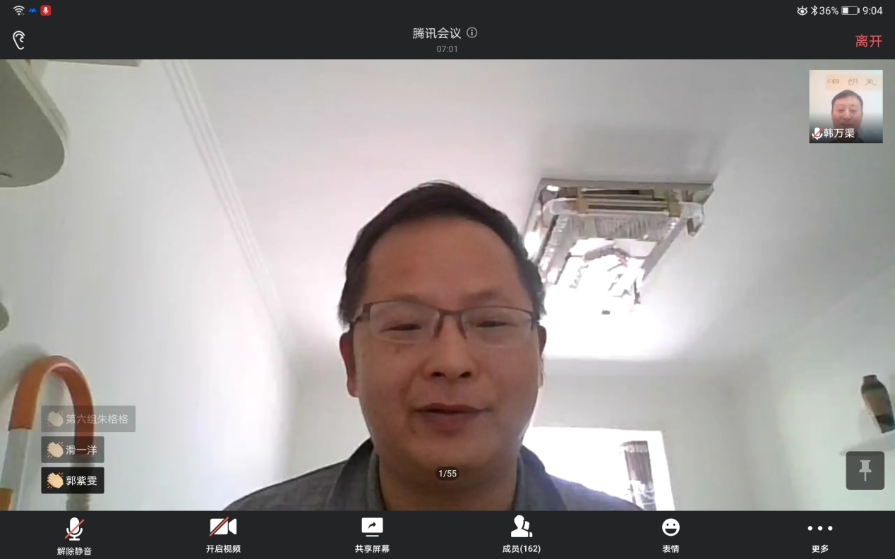 讲座开始,罗梁波教授从自己的人生经历谈起,讲述了从刊物主编到高校老师的转型历程并以几句箴言“人生一个阶段做好一件事、草根靠更大绩效解决问题。”与大家共勉,传递给我们脚踏实地和认真做事的人生态度。接下来结合自己的学术研究经历与大家分享了如何形成良好的自我训练和学术习惯,罗教授指出要养成阅读思想史、理论和名著的习惯、每天码500-1000字坚持十年如一日、养成资料收集和调研的习惯、养成制定研究计划的习惯,最后是怀着热忱之心对学术研究持之不懈的坚持精神。最后罗梁波教授结合发表过的文章,具体向大家介绍了自己的研究方法。罗教授指出文献研究法先用文本方式把握历史,再用实证方式把握现实,最后用思辨方式来把握未来。还讲到关于处理结论的几种方式:就事论事、经验结构模式、理论提升方式、理论探索模式,这些研究方法让大家受益匪浅。同学们通过线上聊天的方式与罗梁波教授进行互动交流,最后韩万渠老师对本次的线上讲座进行了总结发言,本次线上讲座在大家热烈的掌声中圆满结束。
