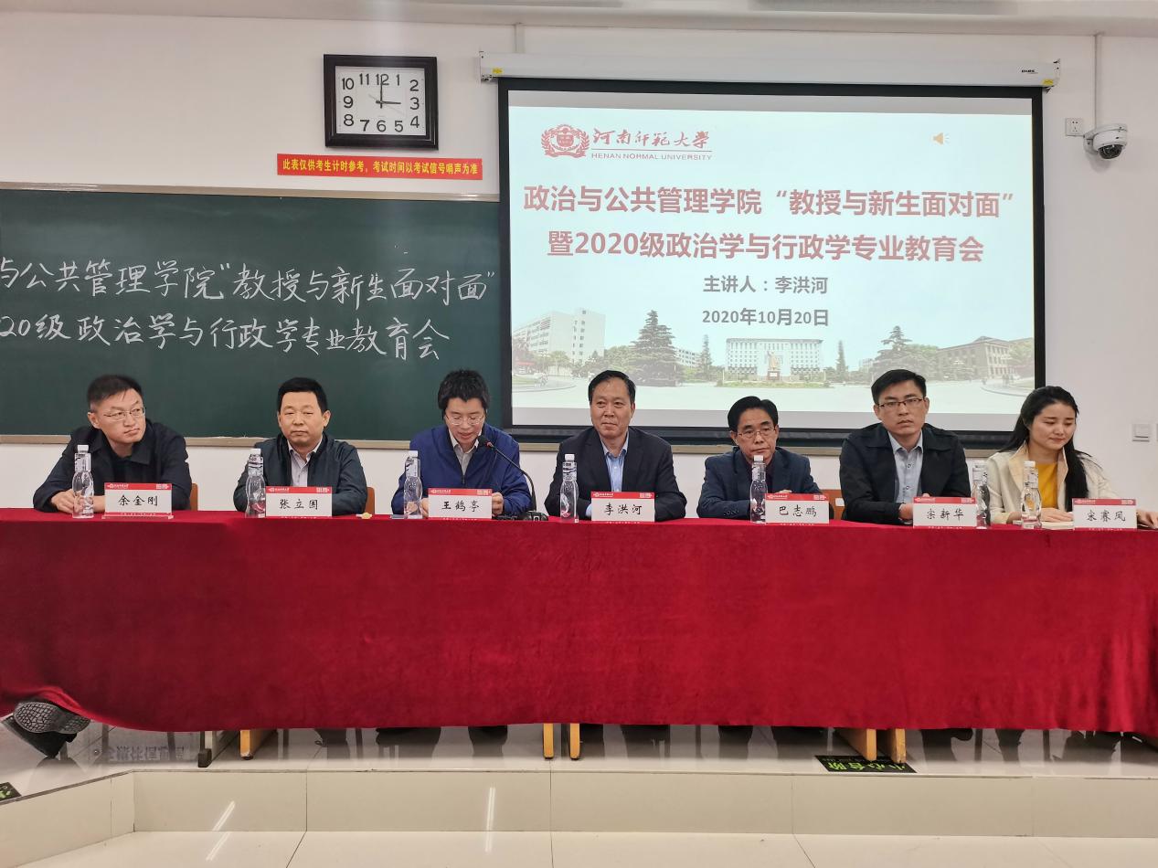 10月20日下午,政治与公共管理学院于东区综合楼315教室举办“教授与新生面对面”暨2020级政治学与行政学专业教育会。政治与公共管理学院院长李洪河、政治学教研室教师代表、2020级辅导员参加了会议。会议由政治与公共管理学院政治学教研室主任王鹤亭主持。