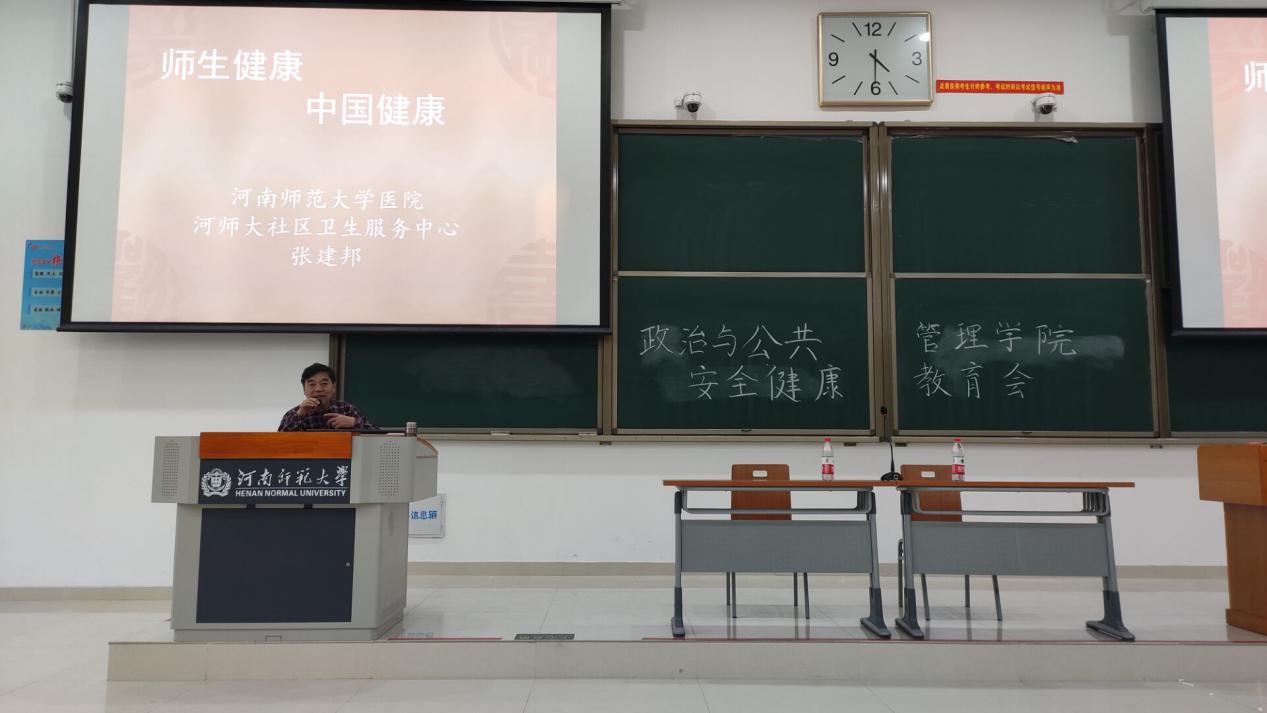 11月10日下午,政治与公共管理学院于东区综合楼302教室开展新生健康教育讲座活动。本次邀请到校医院副院长张建邦担任主讲嘉宾。讲座由2020级辅导员马文韬主持,2020级全体本科生参与其中。