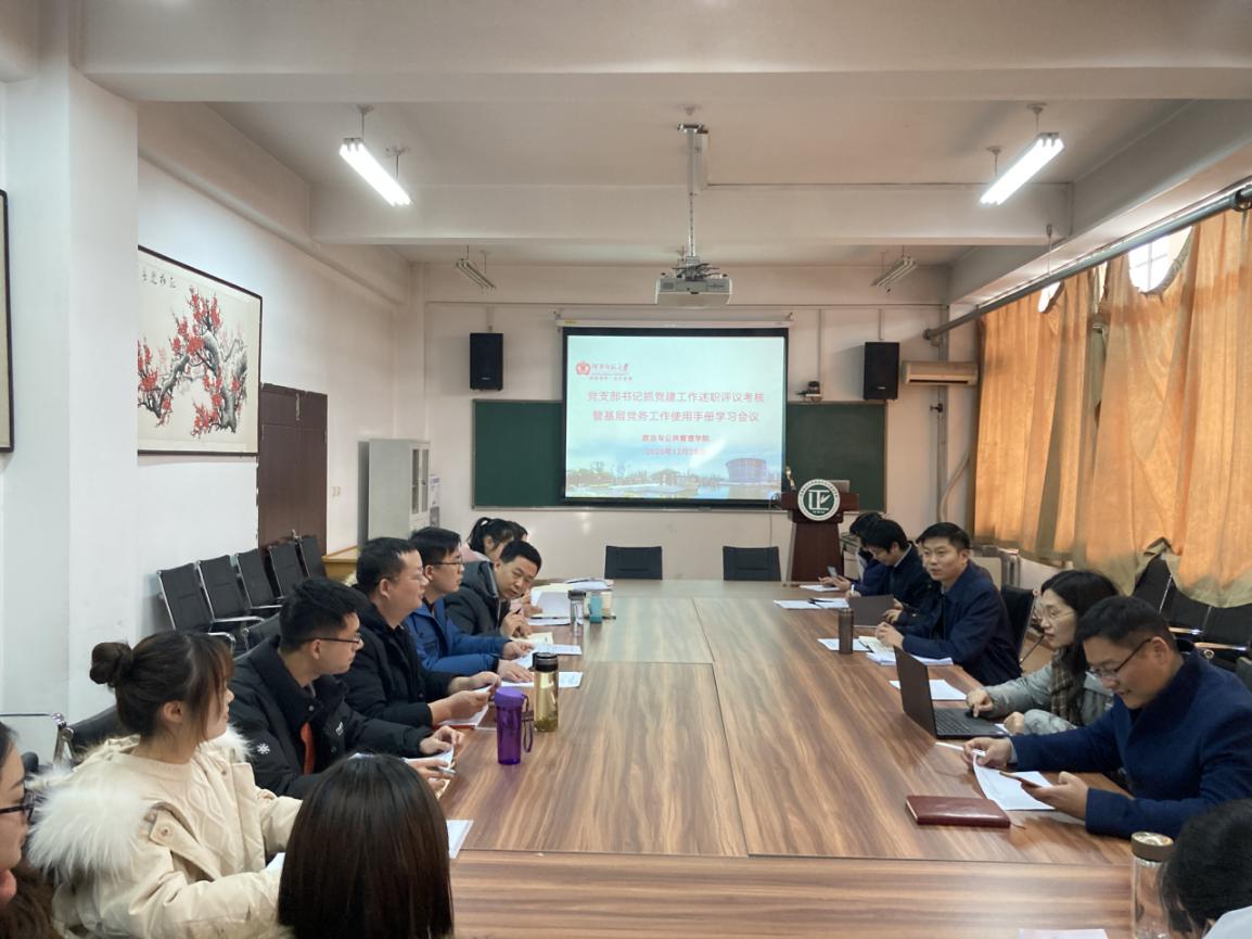 12月29日下午,政治与公共管理学院在学院517会议室召开党支部书记抓党建工作述职评议暨《基层党务工作使用手册》学习会议。学院领导班子成员,学院各党支部书记及部分教师代表参加会议。会议由学院党委书记段红伟主持。