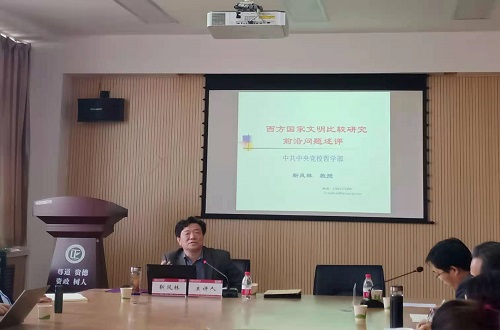 4月26日上午,应政治与公共管理学院的邀请,中共中央党校伦理学教研室主任靳凤林教授为我院师生作了题为《西方国家文明比较研究前沿问题述评》的学术报告。报告会由学院院长李洪河教授主持,学院领导班子成员、相关专业教师、研究生、本科生参与。