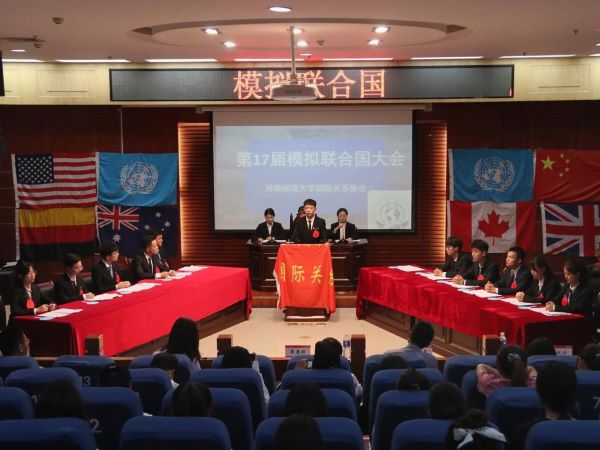 5月27日晚,我院国际关系协会于法学院模拟法庭举行第十七届模拟联合国大会决赛,学院特聘教授、世界和平与发展研究院院长席来旺,国际政治教研室王震、岳峰、李垣萤老师出席并担任评委,各学院二百余名学生到场观看。