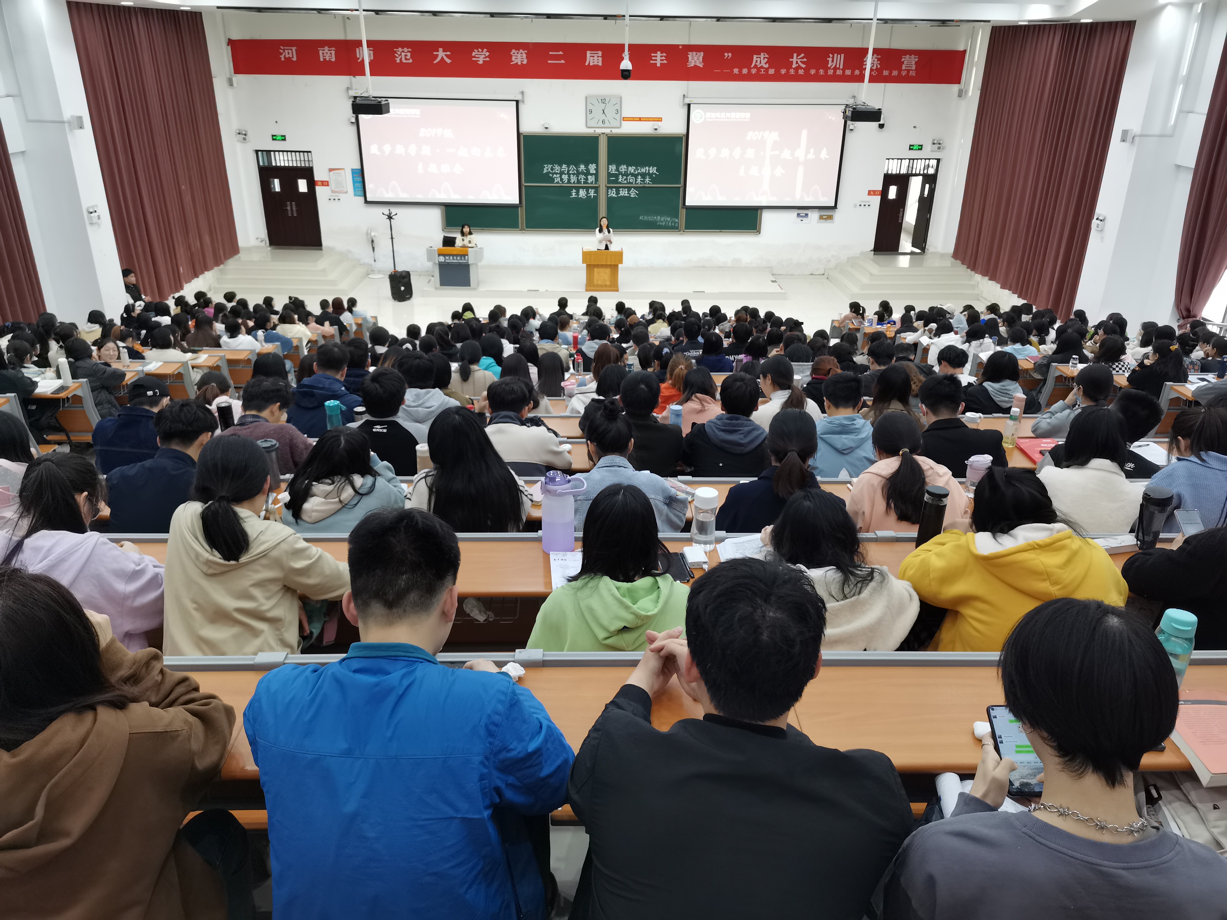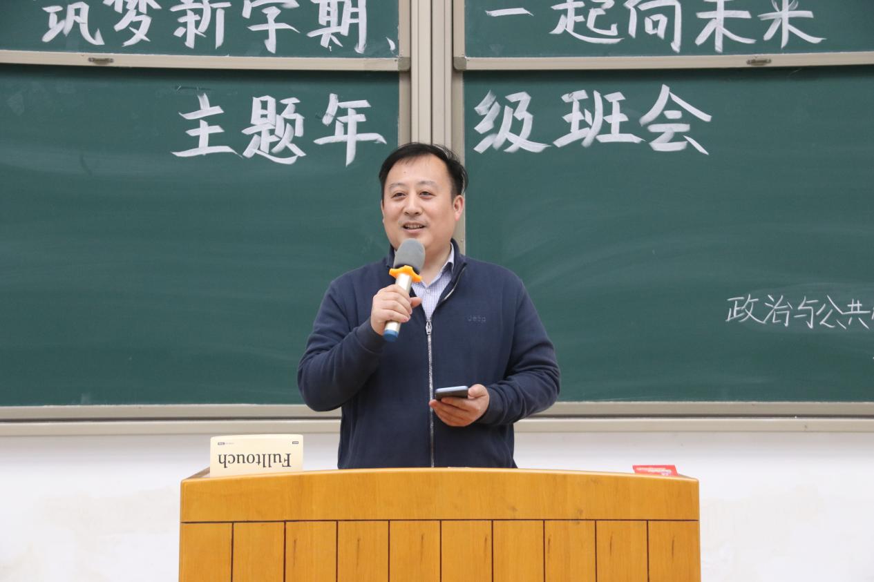 春暖花开启新程,砥砺奋进续新篇。3月4日下午,我院2019级于文昌楼102室召开“筑梦新学期·一起向未来”主题班会暨2021-2022学年第一学期总结分享大会,学院党委副书记张瑾,副院长王鹤亭、韩万渠,教师代表宗新华、王震,2019级专兼职辅导员孙琳娜、王璐璐、齐梦雪及全体学生参与其中。