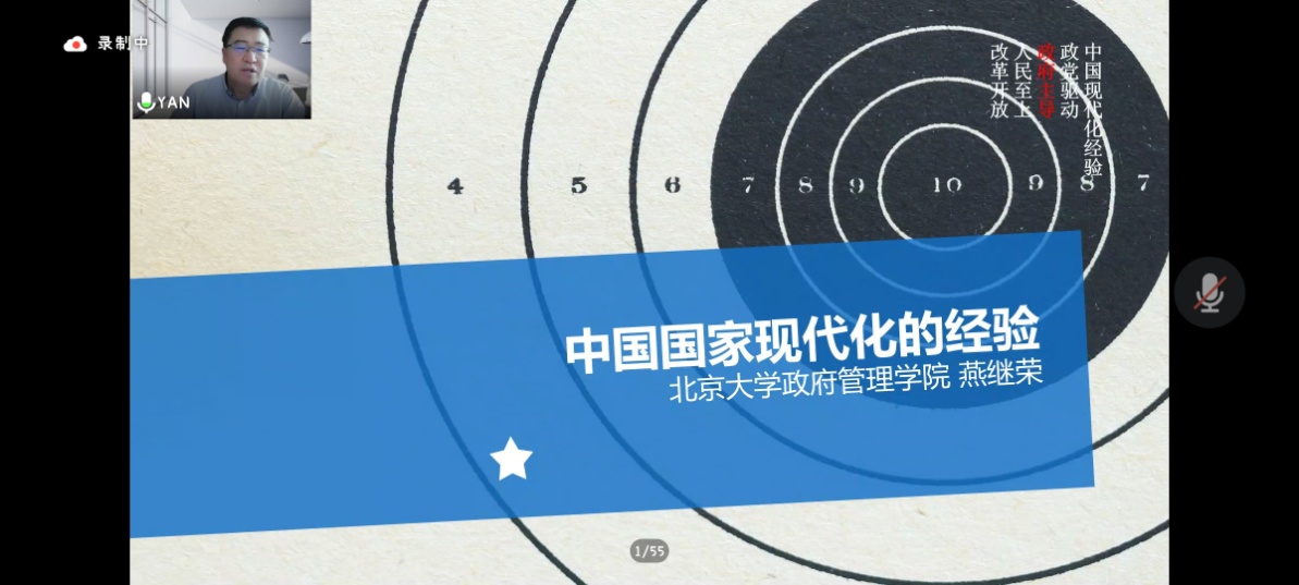 5月20日下午,应政治与公共管理学院邀请,北京大学政府管理学院院长燕继荣教授在线作了题为《中国国家现代化的经验》的专题讲座,报告由天津师范大学高建教授主持,相关专业老师、研究生和本科生参与。