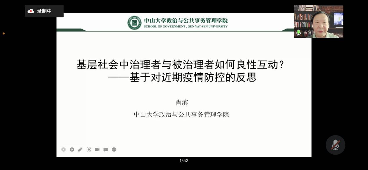5月20日晚上,应政治与公共管理学院邀请,中山大学政治与公共事务管理学院肖滨教授在线为学院师生作了题为《基层社会中治理者与被治理者如何良性互动》的学术报告,报告由天津师范大学高建教授主持,相关专业教师、研究生、本科生参与。